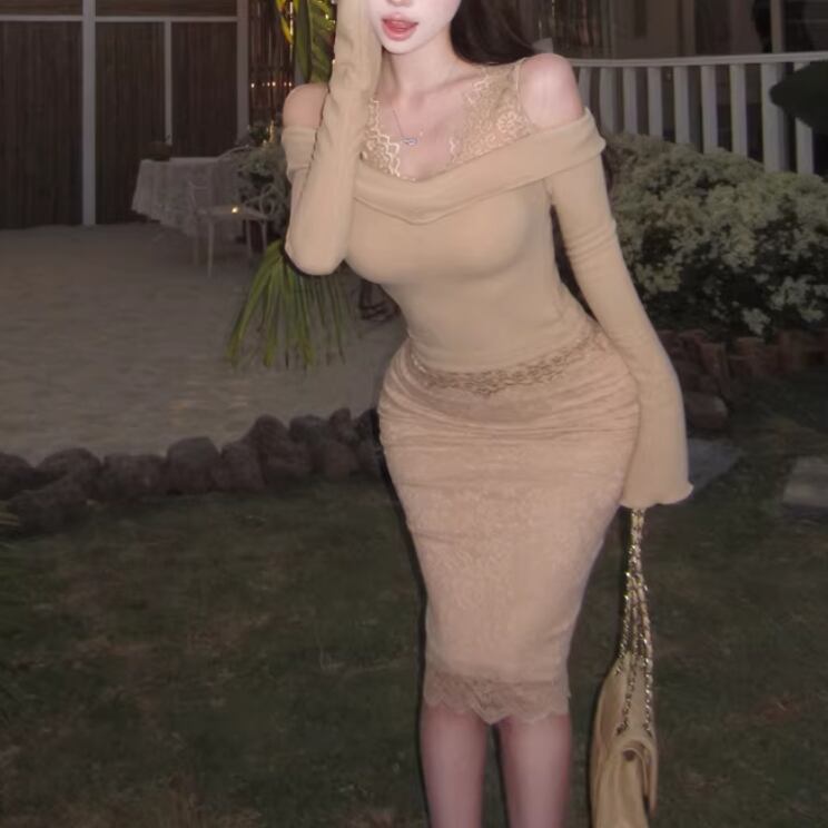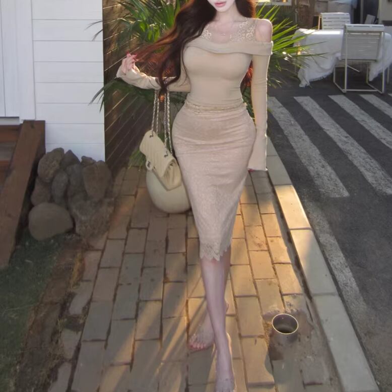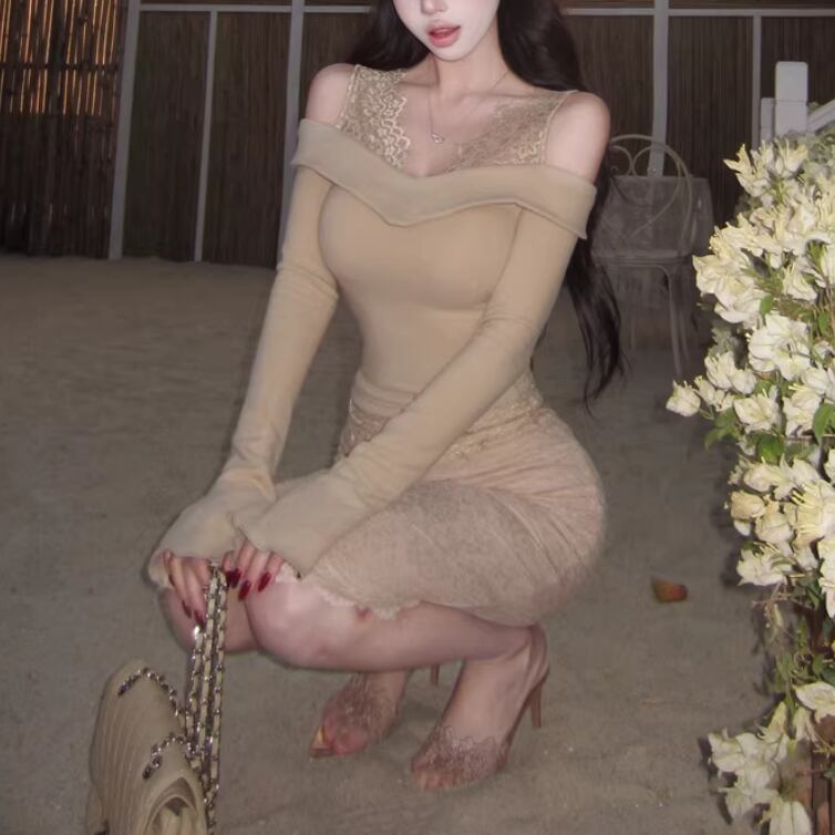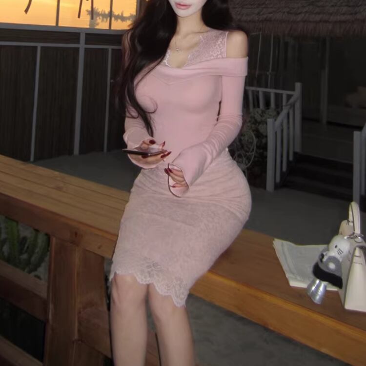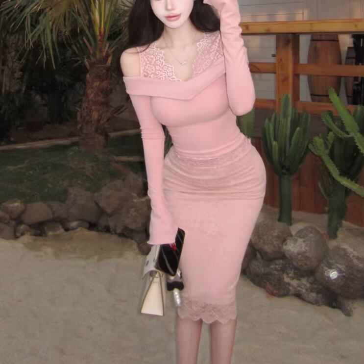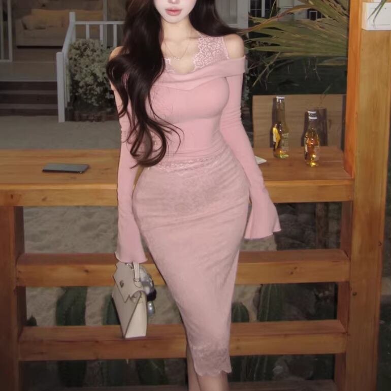 【2点セット】3色/パールデコフリルオフショルセーター+ニットミニスカート ・73703