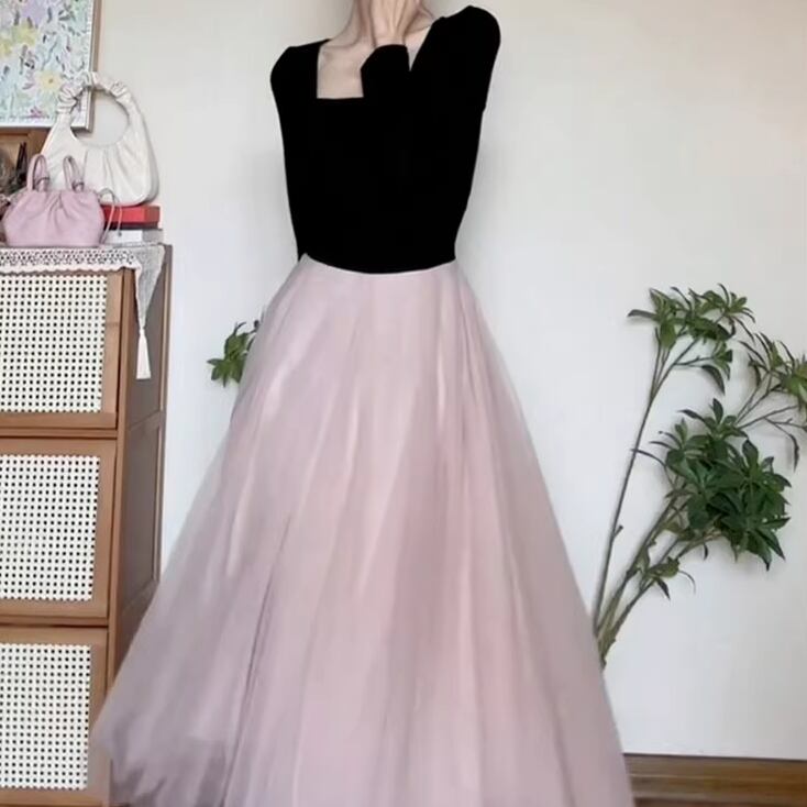 2色/チュールフラワーフリルネックボウタイワンピ ・54889