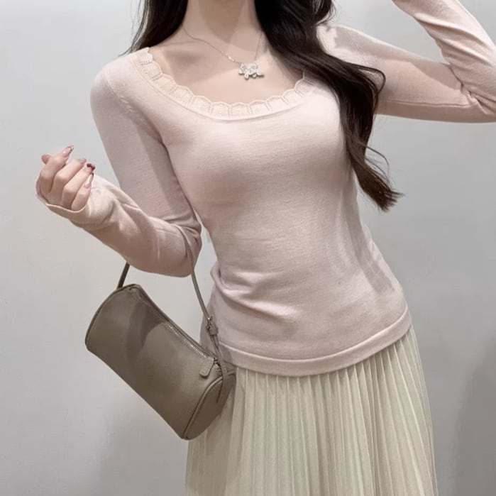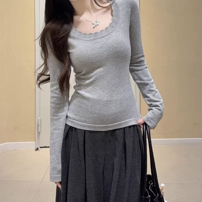 レースカラーアシメボタンドッキングトップス ・71106