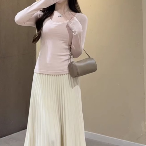 3色/レースアップVネックドッキングトップス ・73992