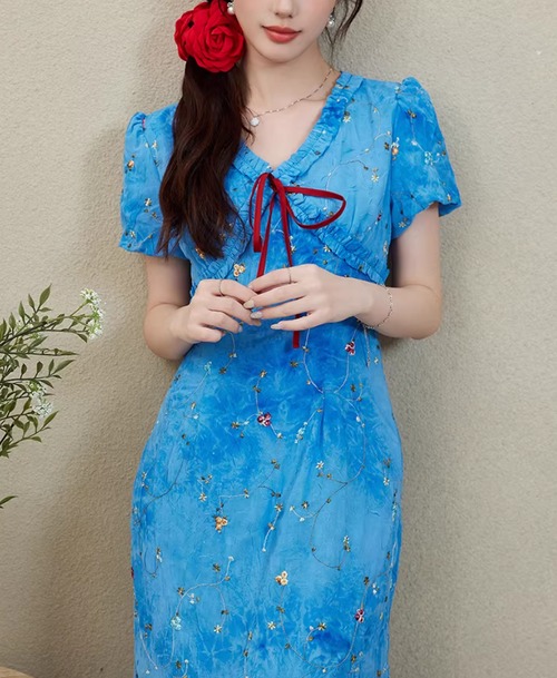 ▽Instagram「新作情報配信中」 フォローお願いいたします。 https://www.instagram.com/sucrier_closet/ ▼カラー ブルー ▼サイズ [ Sサイズ ] 着丈125cm バスト86cm 肩幅33cm 袖丈19cm ウエスト72cm [ Mサイズ ] 着丈126cm バスト90cm 肩幅34cm 袖丈19.5cm ウエスト76cm [ Lサイズ ] 着丈127cm バスト94cm 肩幅35cm 袖丈20cm ウエスト80cm [ XLサイズ ] 着丈128cm バスト98cm 肩幅36cm 袖丈20.5cm ウエスト84cm ※1-3cm程度の誤差がある場合がございます。予めご了承ください。 ▼シーズン 春,夏 ▼同じカテゴリの商品はこちら https://www.sucrier.jp/categories/1713098 ▽お支払い方法 ・クレジットカード決済 ・キャリア決済 (docomo/au/Softbank/Y!mobile) ・後払い決済 (商品お届け後コンビニ払いなど) ▽注意点 ※こちらの商品は決済から10日-3週間前後でのお届けとなります。 ※配送日時指定等に関しては、ご指定できないことご了承くださいませ。 ※できる限り早くお届けできるように手配させて頂きます。 ※検品はしておりますが、もし届いた商品に不備がありましたら、誠実に対応させていただきます。 商品ID:SC076007