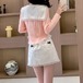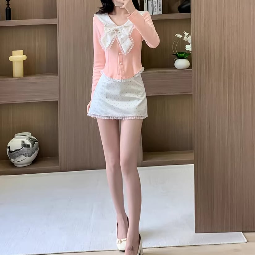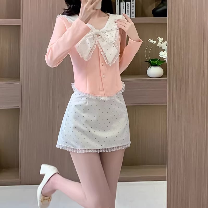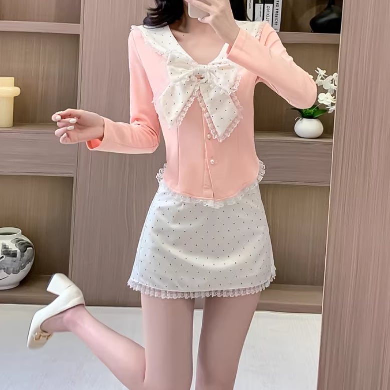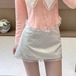 【2点セット】3色/パールデコフリルオフショルセーター+ニットミニスカート ・73703