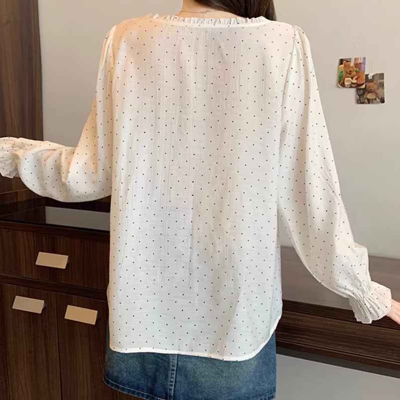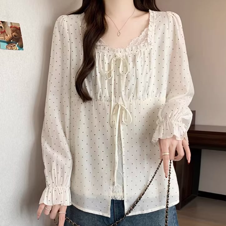 Vネックフリルリボンブラウス ・75996