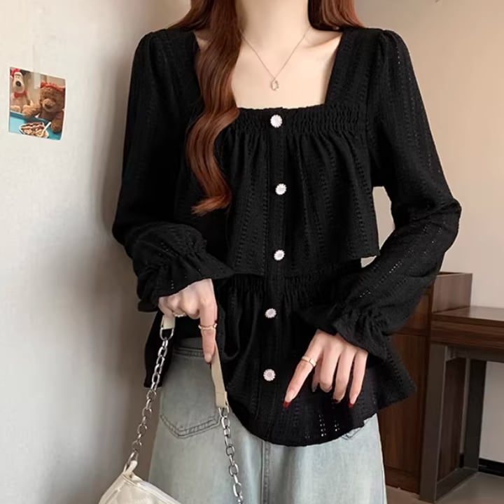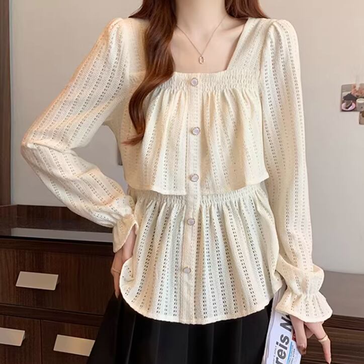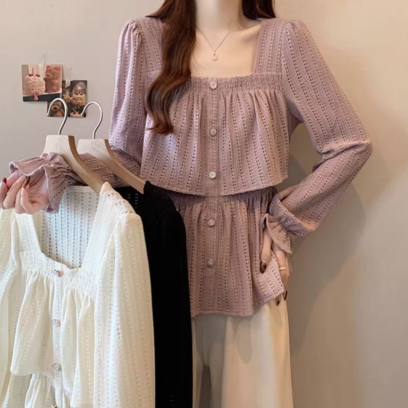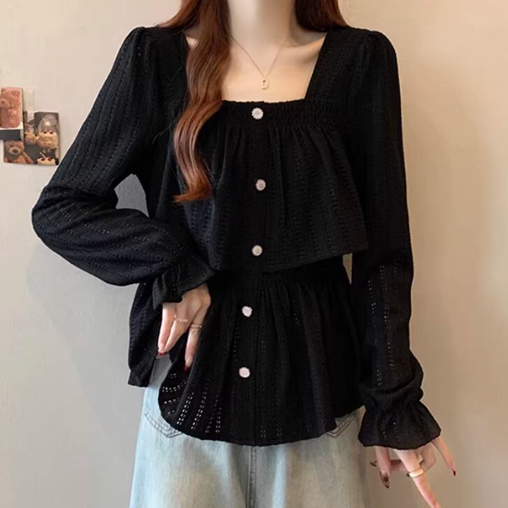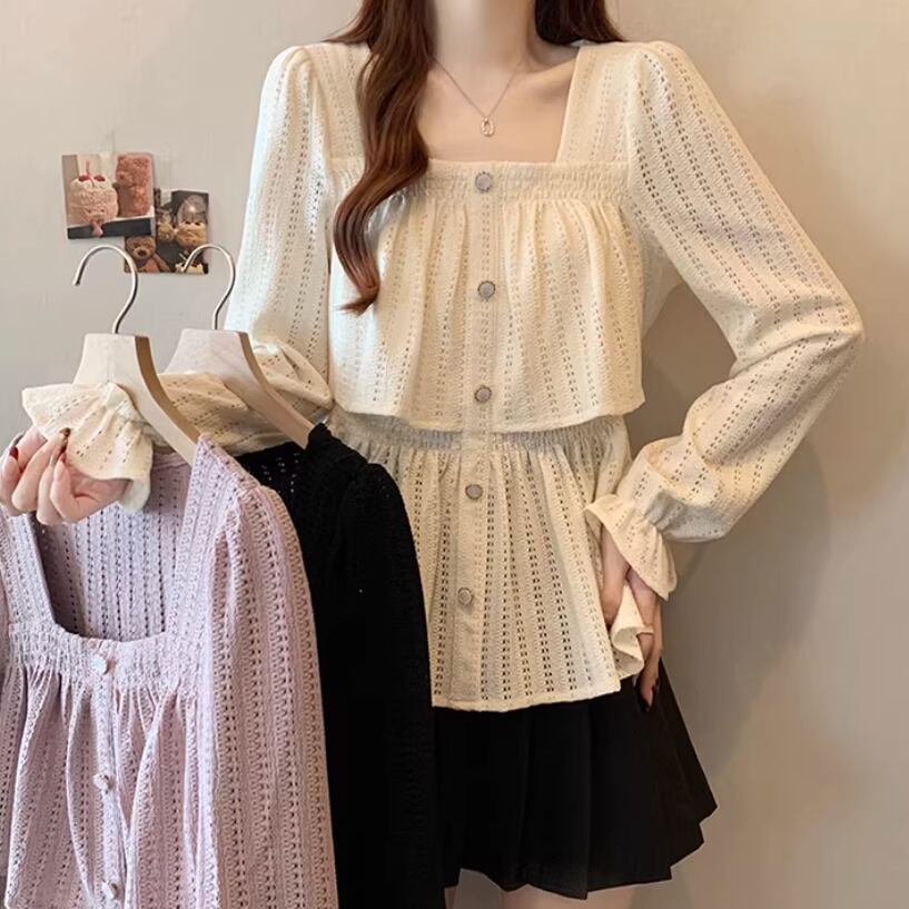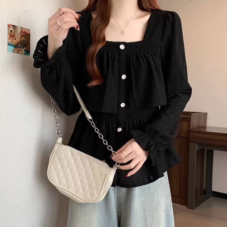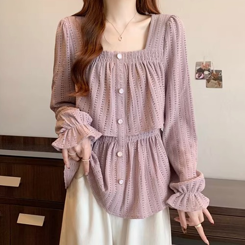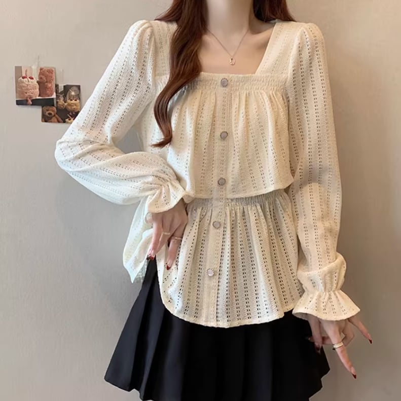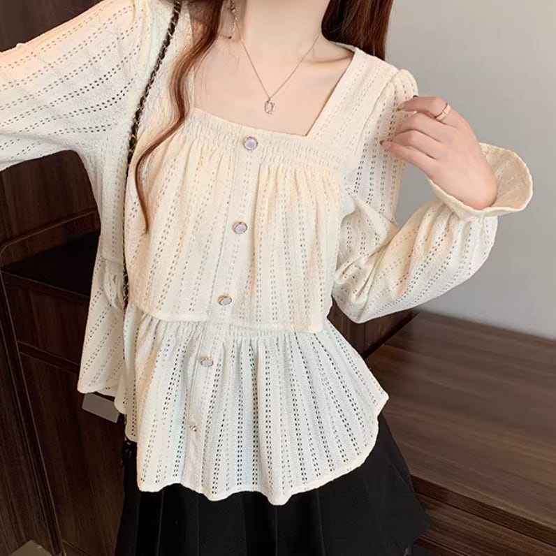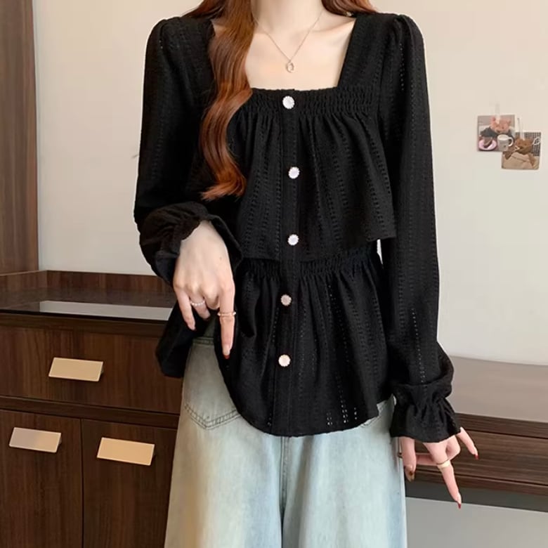 レースカラーアシメボタンドッキングトップス ・71106