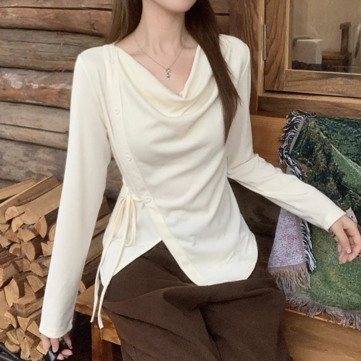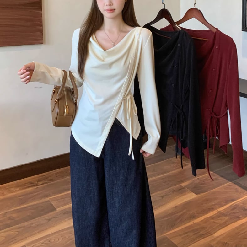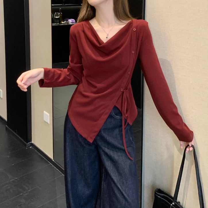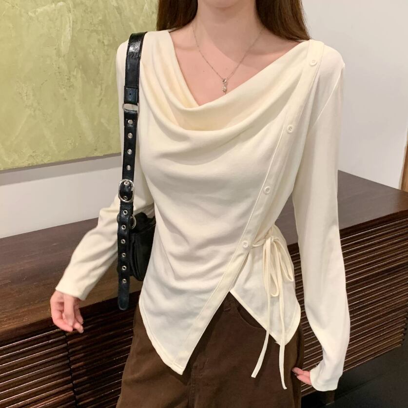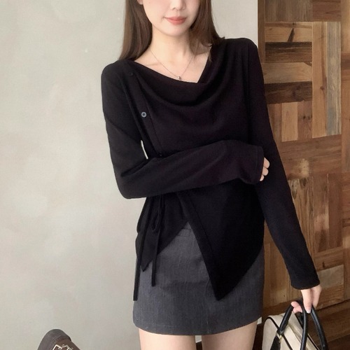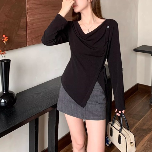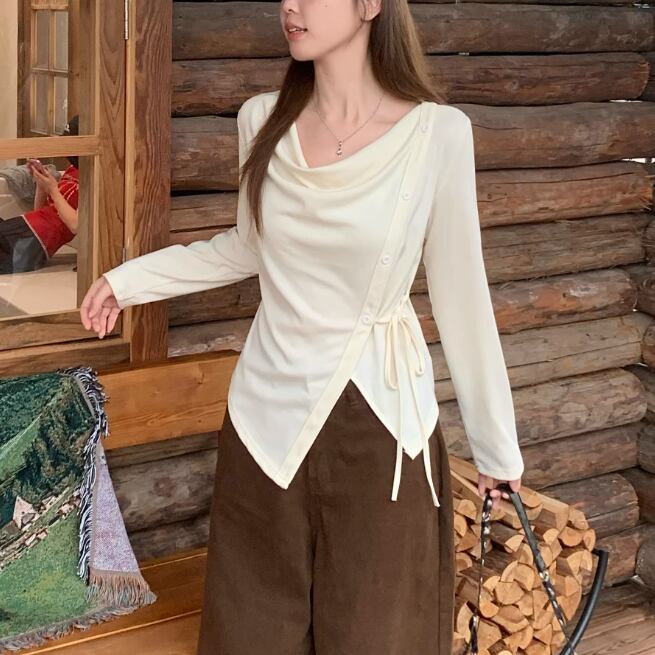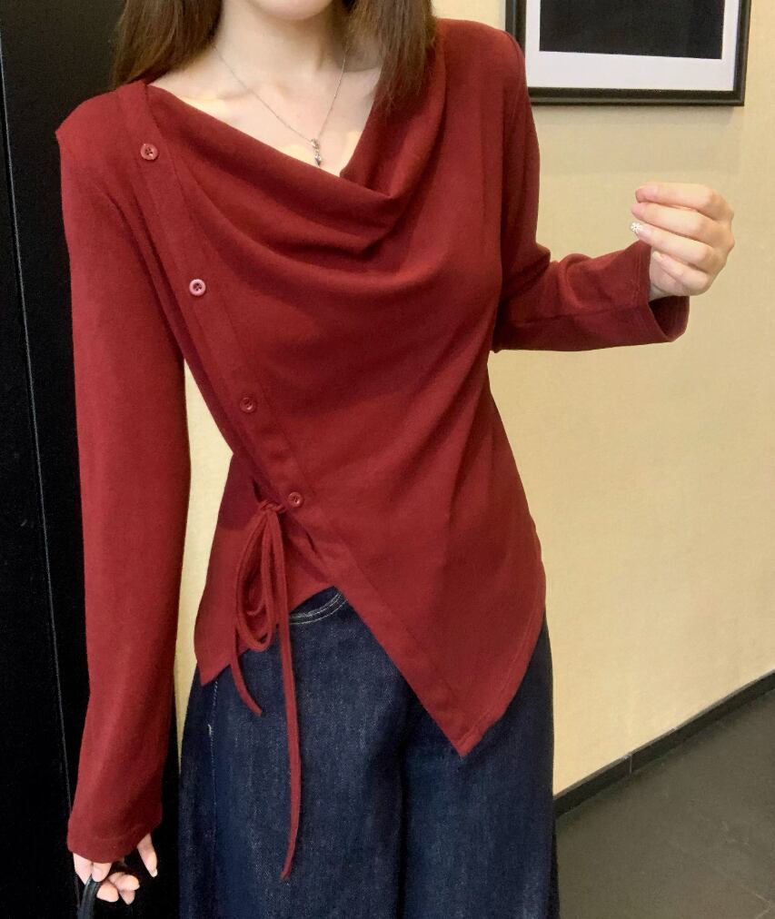 レースカラーアシメボタンドッキングトップス ・71106