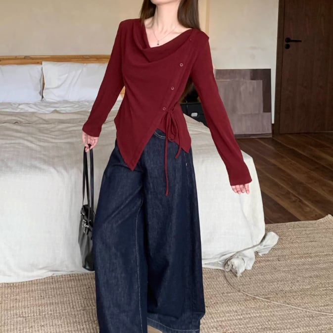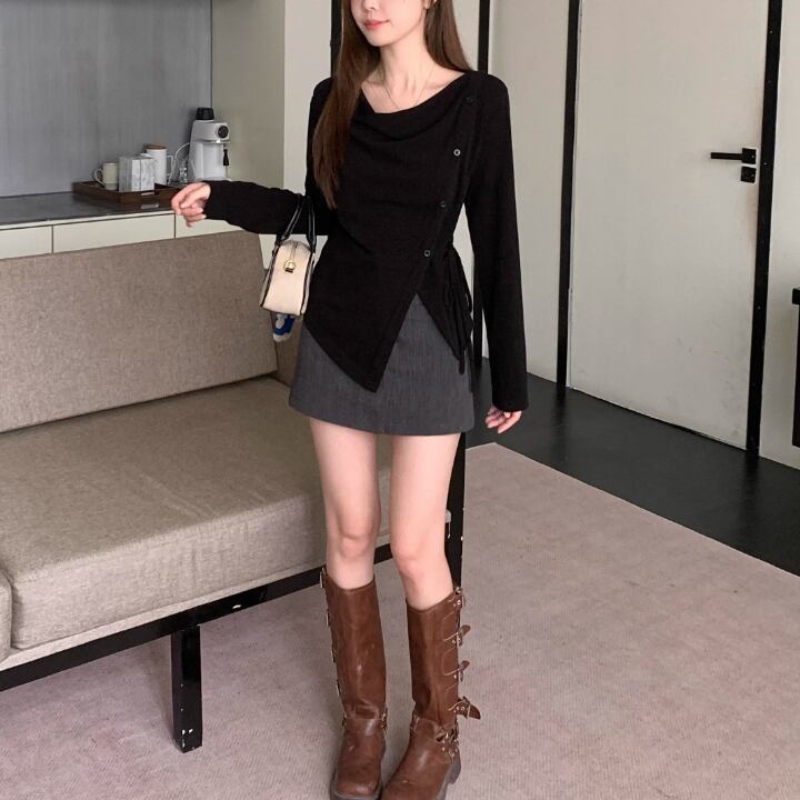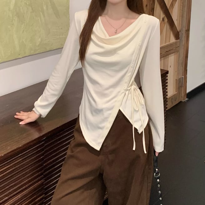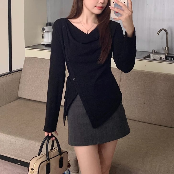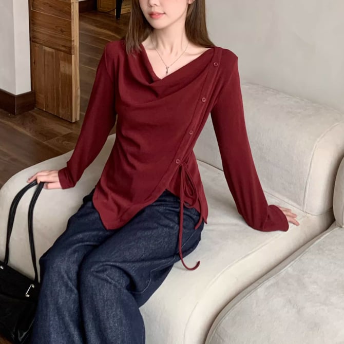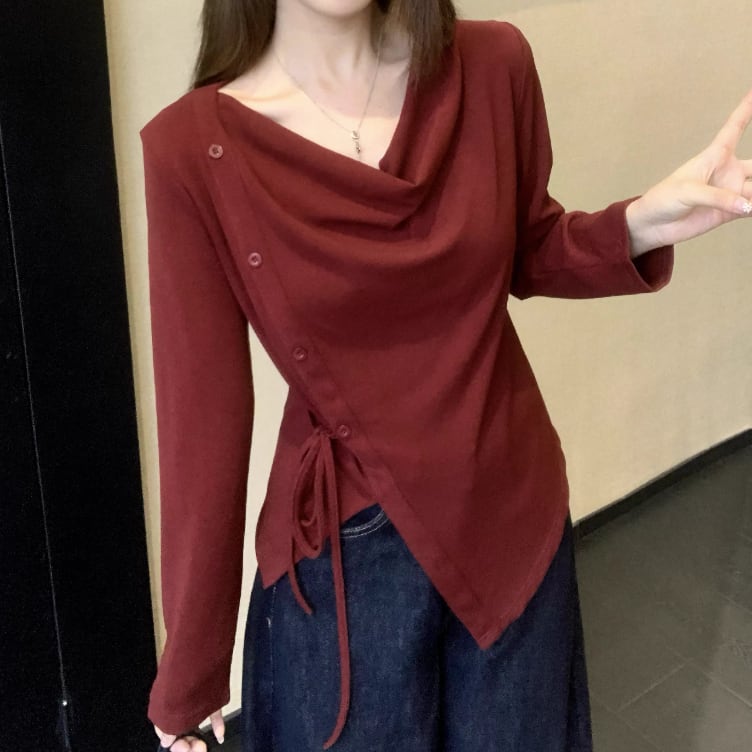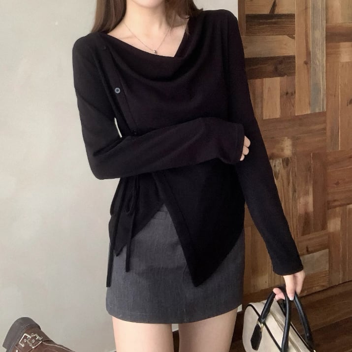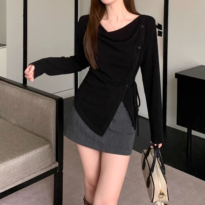 レースカラーアシメボタンドッキングトップス ・71106