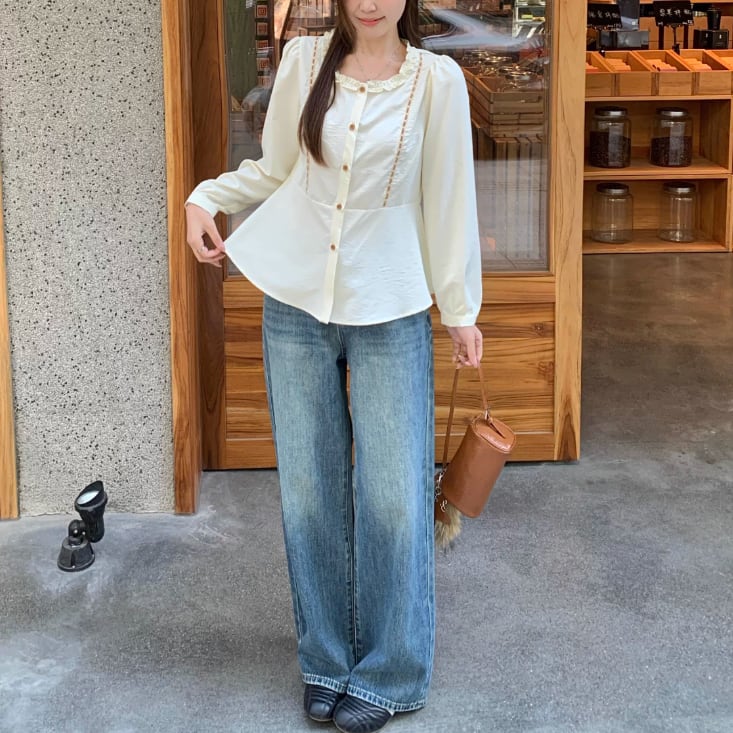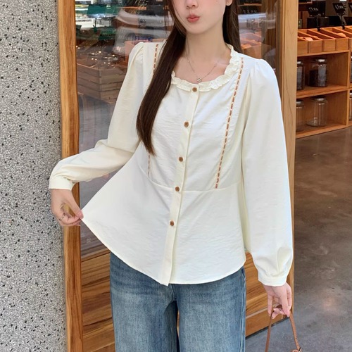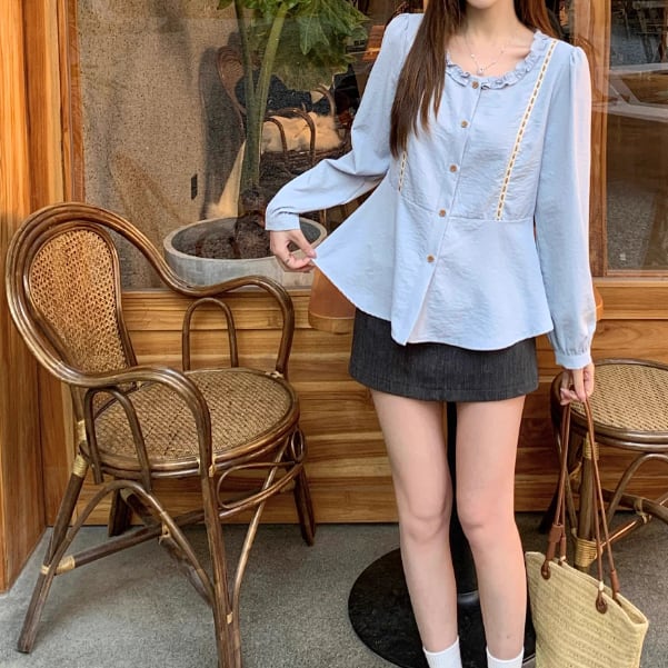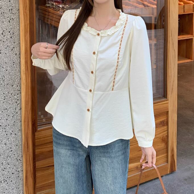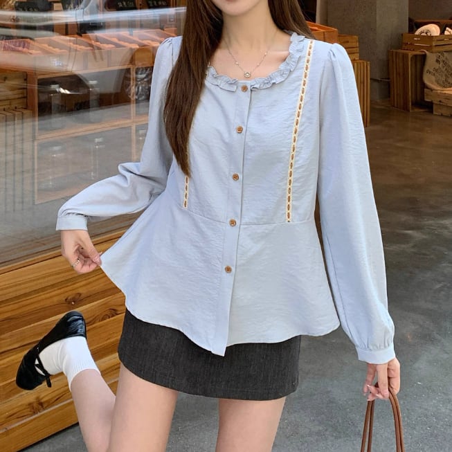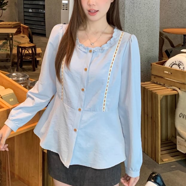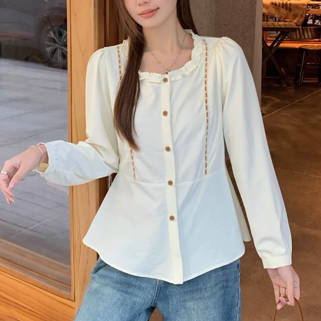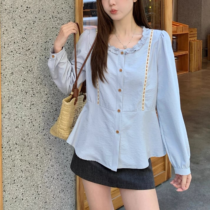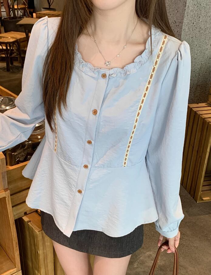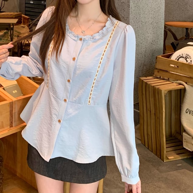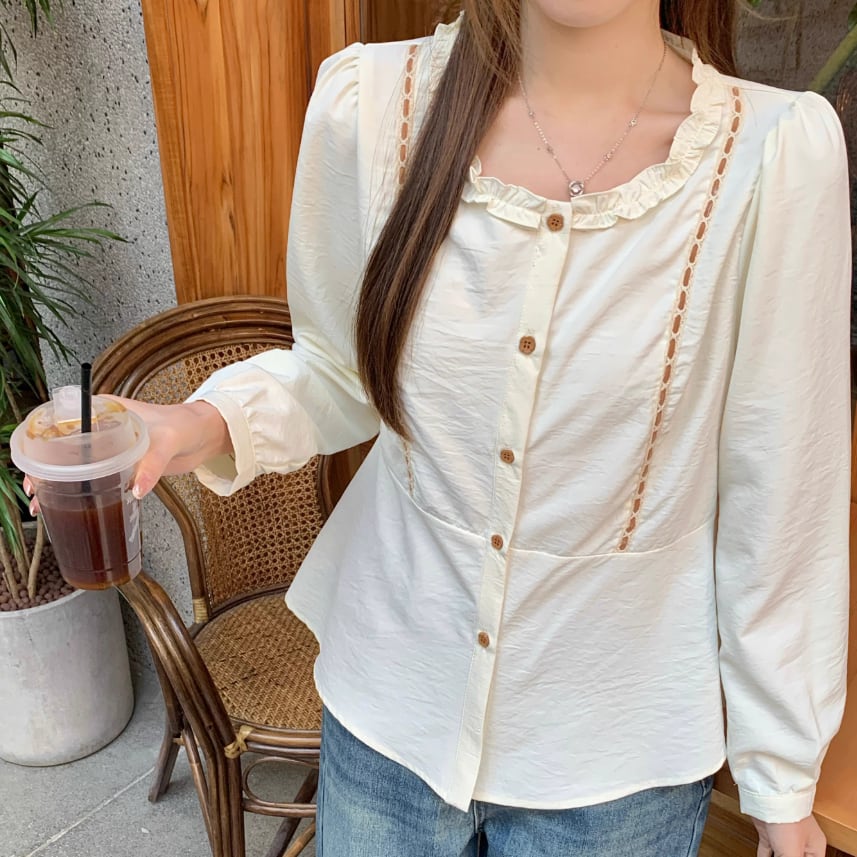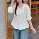 Vネックレースラッフルブラウス ・75382