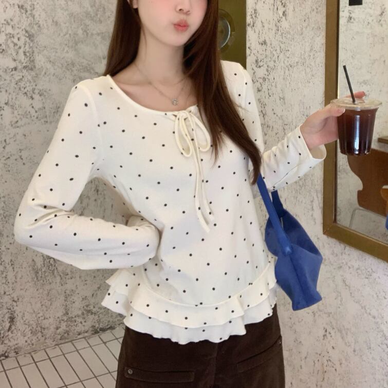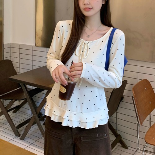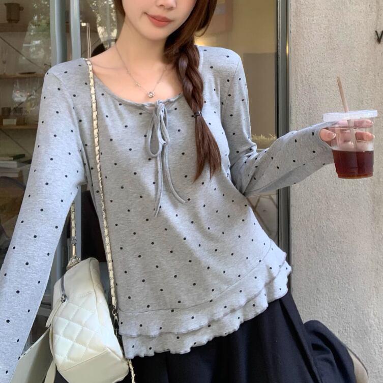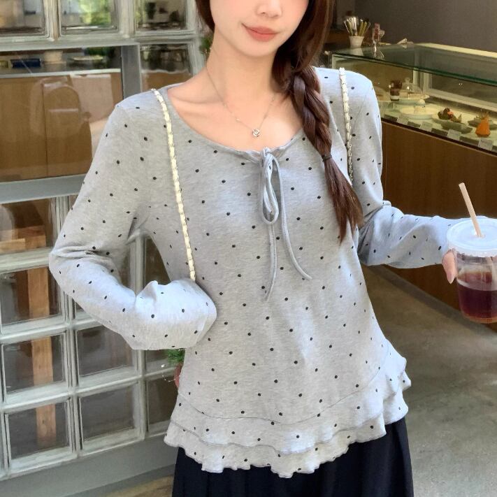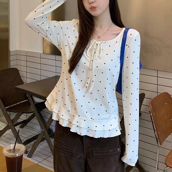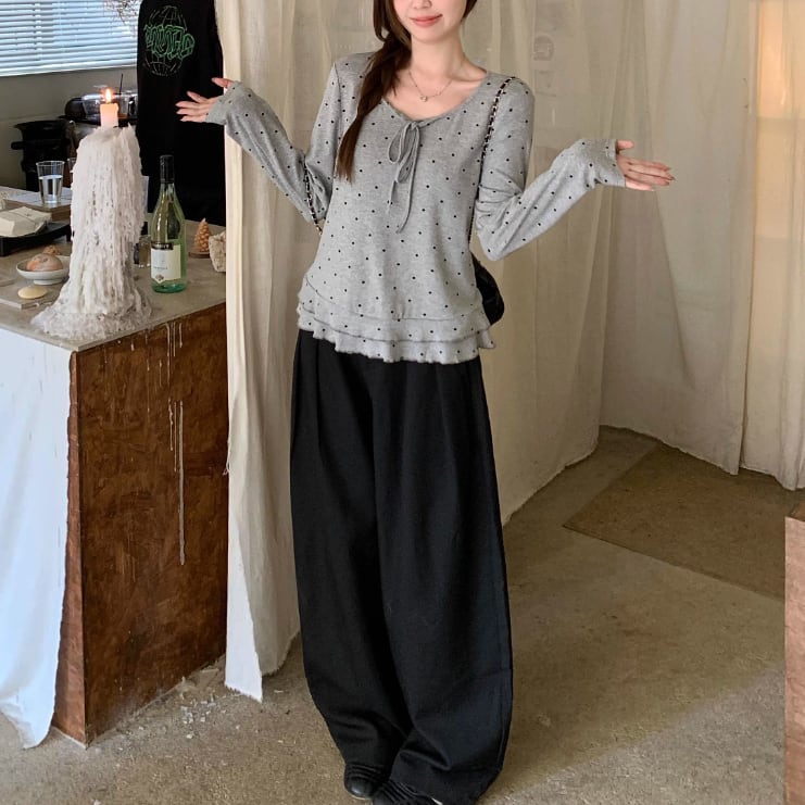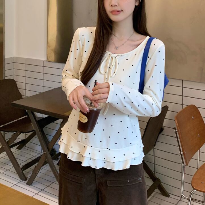 3色/レースアップVネックドッキングトップス ・73992