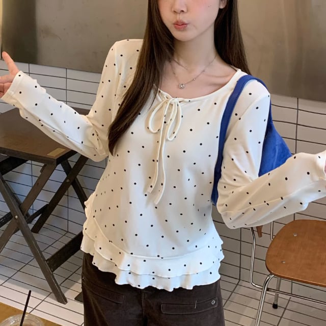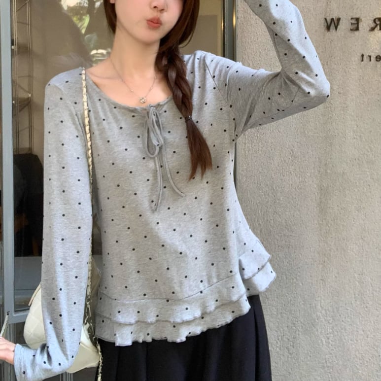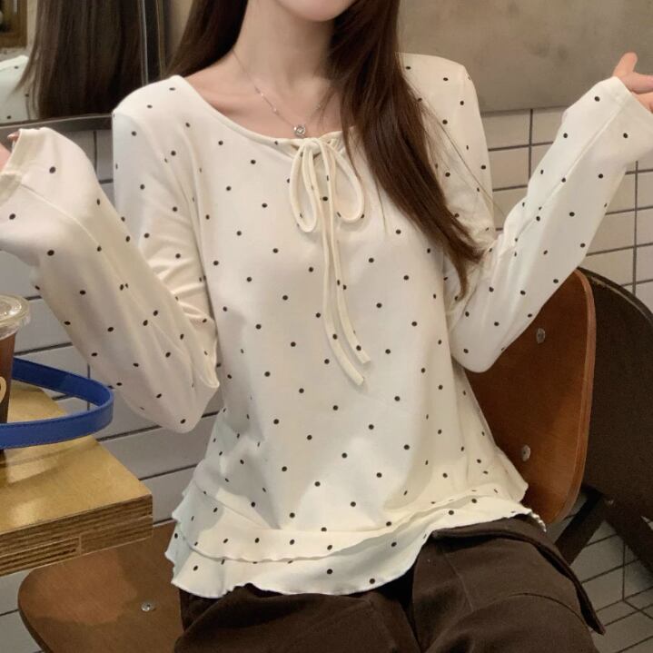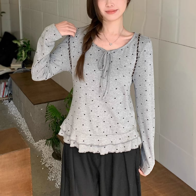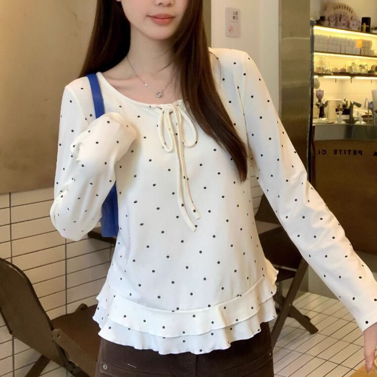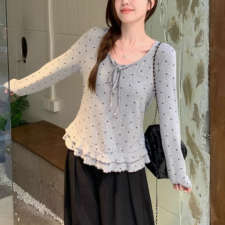 3色/レースアップVネックドッキングトップス ・73992