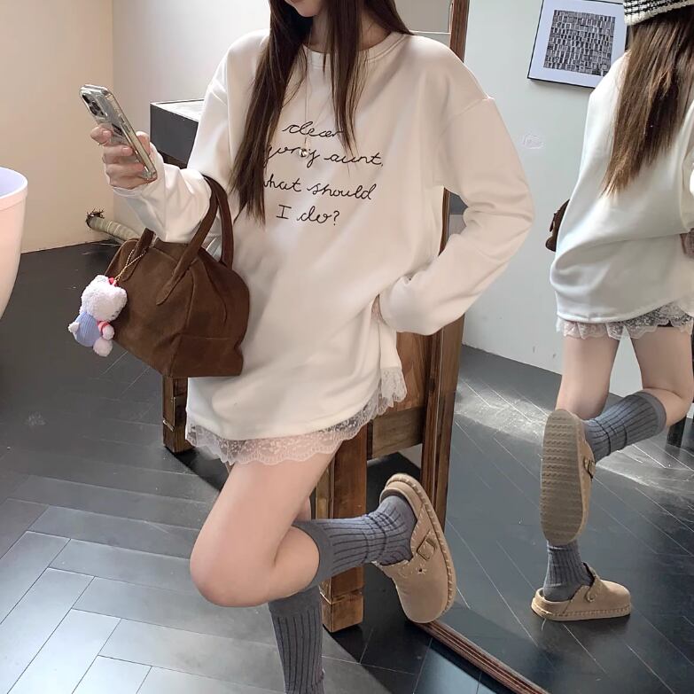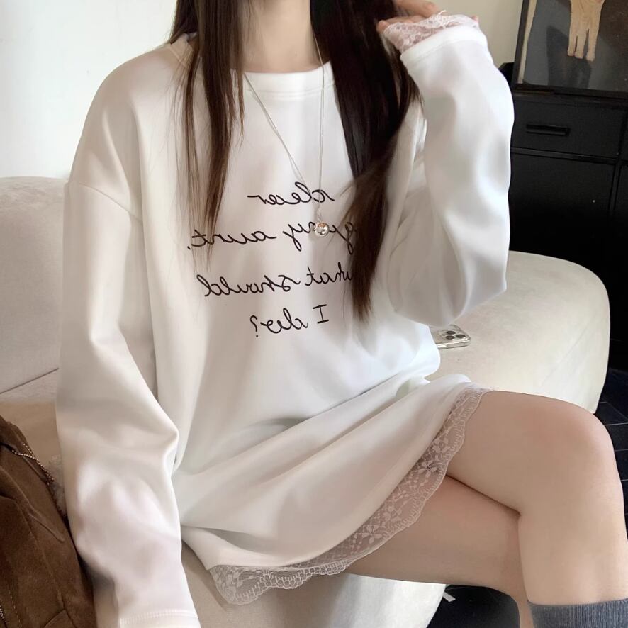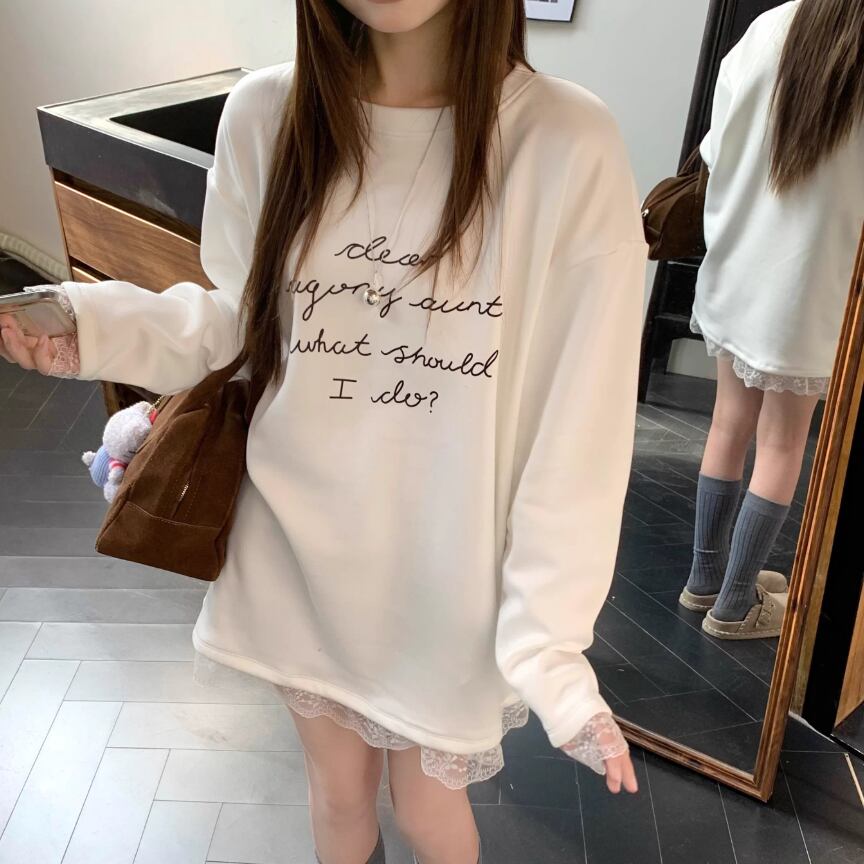 レースカラーアシメボタンドッキングトップス ・71106