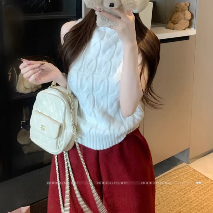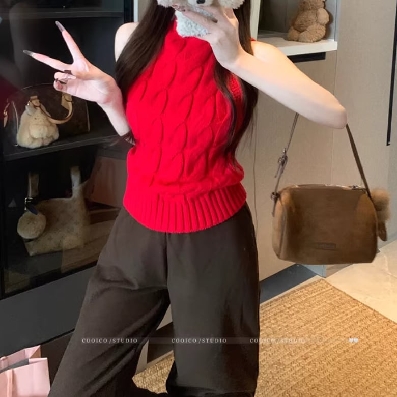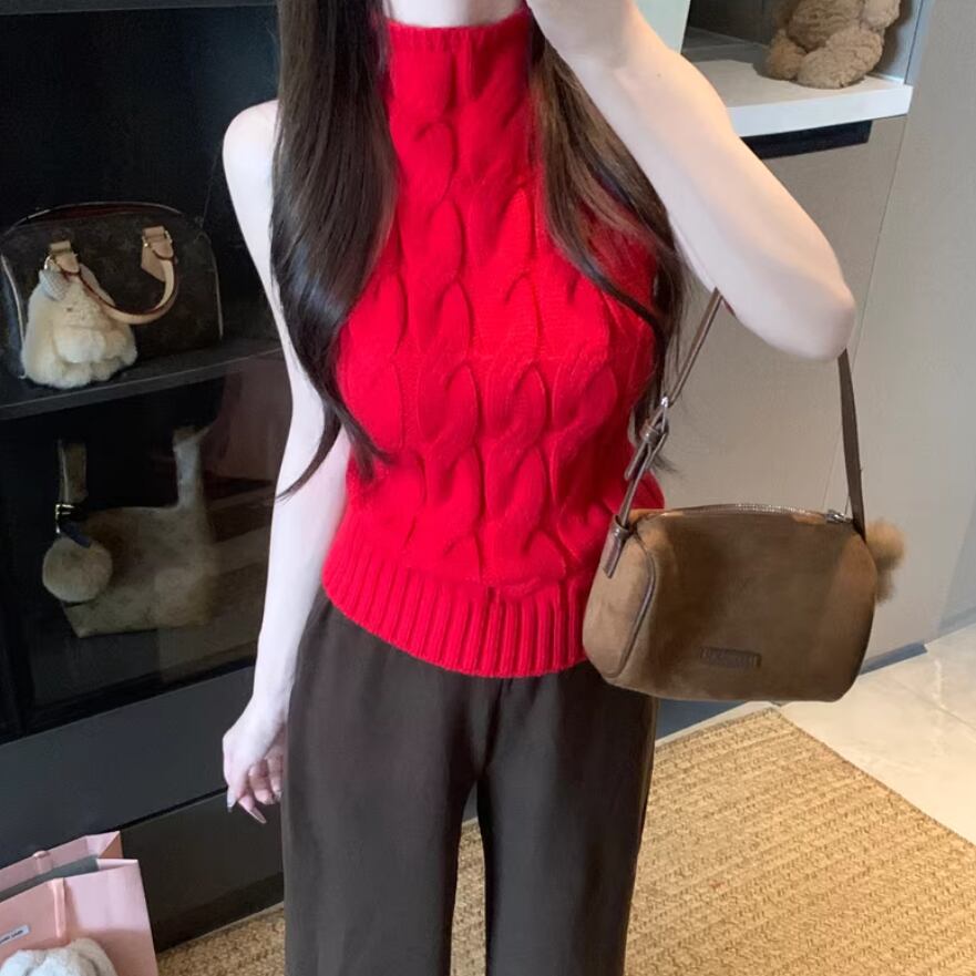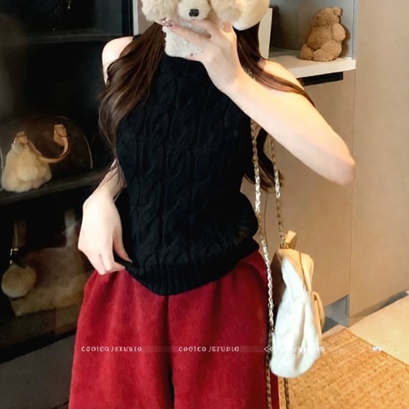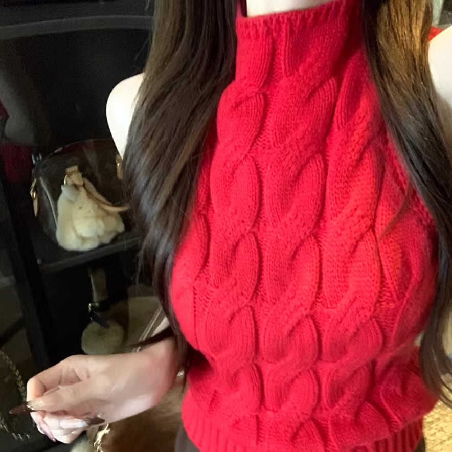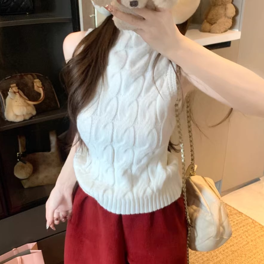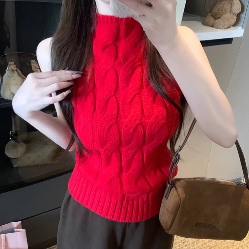 3色/ハイネックノースリーブケーブルニット ・75339
