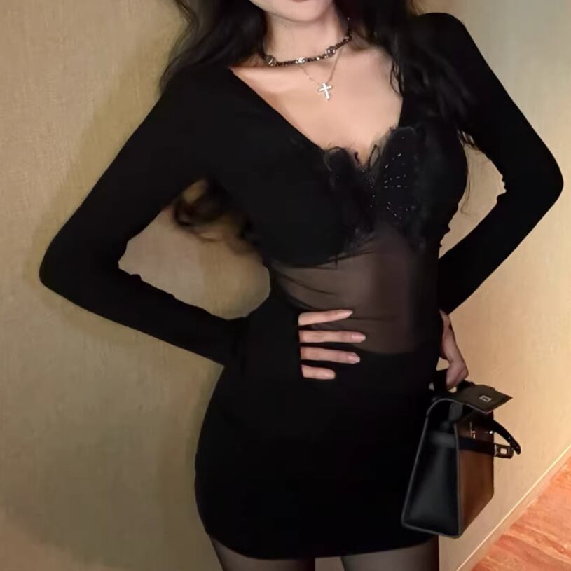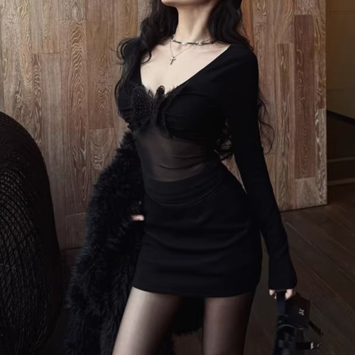 2色/チュールフラワーフリルネックボウタイワンピ ・54889