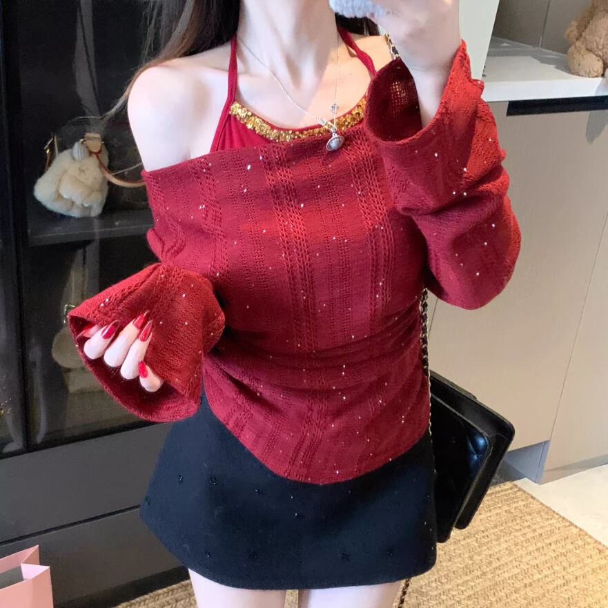 3色/レースアップVネックドッキングトップス ・73992