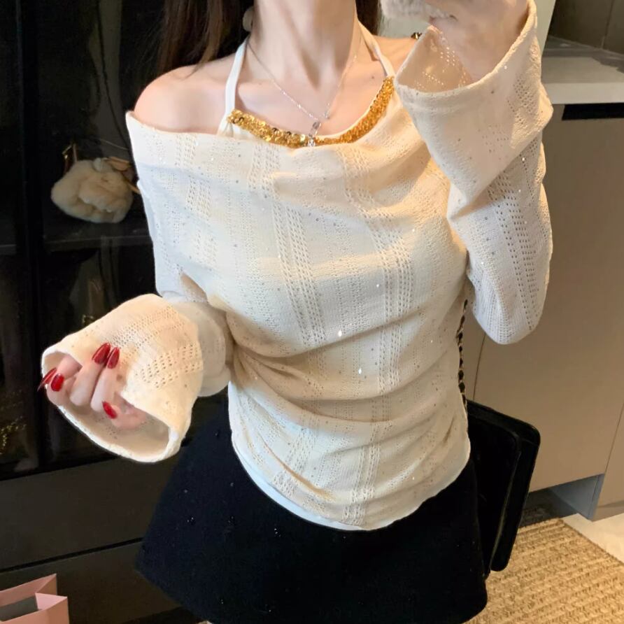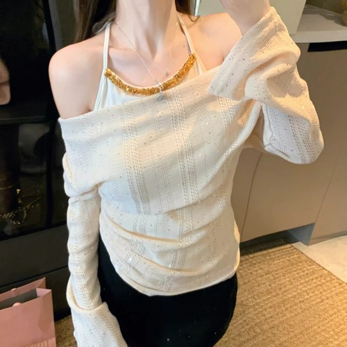 レースカラーアシメボタンドッキングトップス ・71106