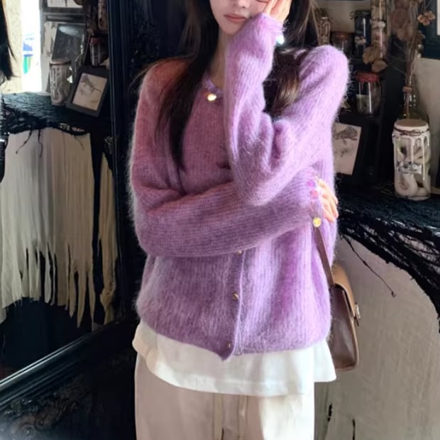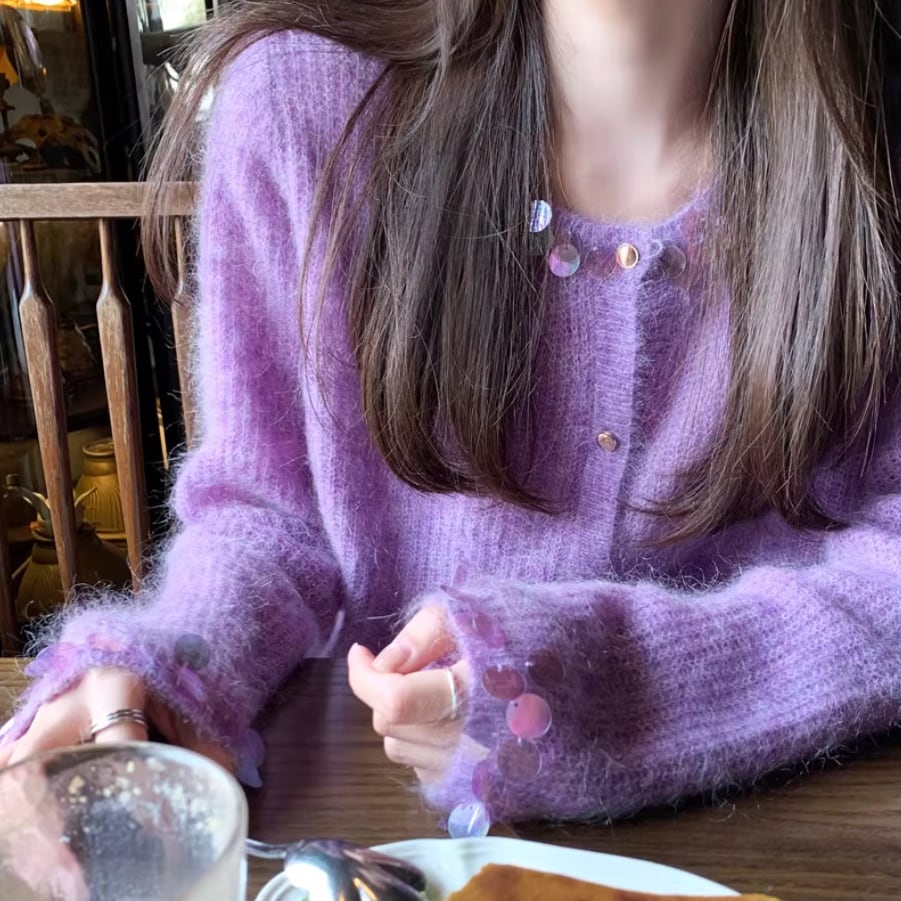 リボングリッターケーブルニットカーデ ・74024