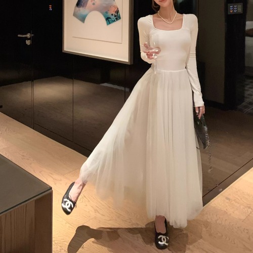 フリルヨークウエストマークフレアワンピ ・60855