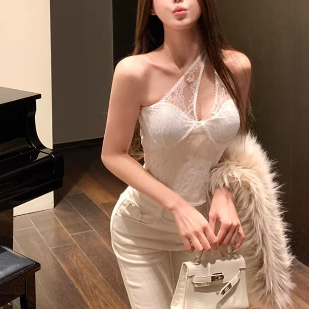 3色/カップ付きレースリボンベアトップ ・75258