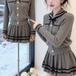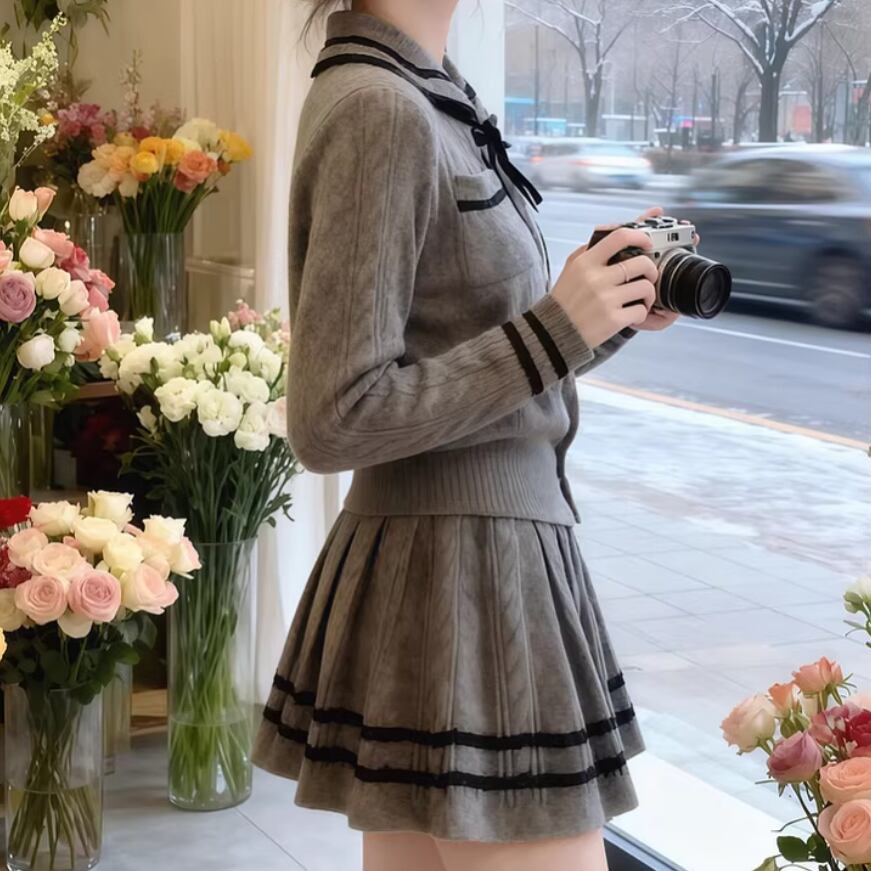 【2点セット】ポイントチェッククルーネックニットカーデ+チェックプリーツスカート ・74241