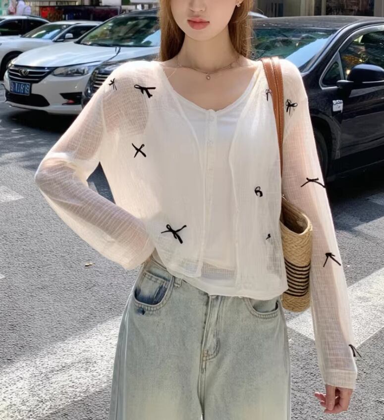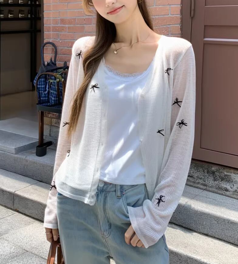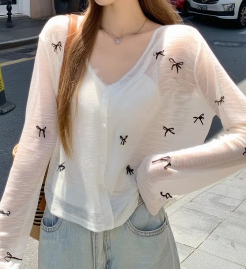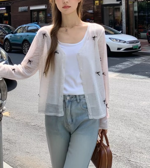3色/リボンハニカムニットカーデ ・20306
