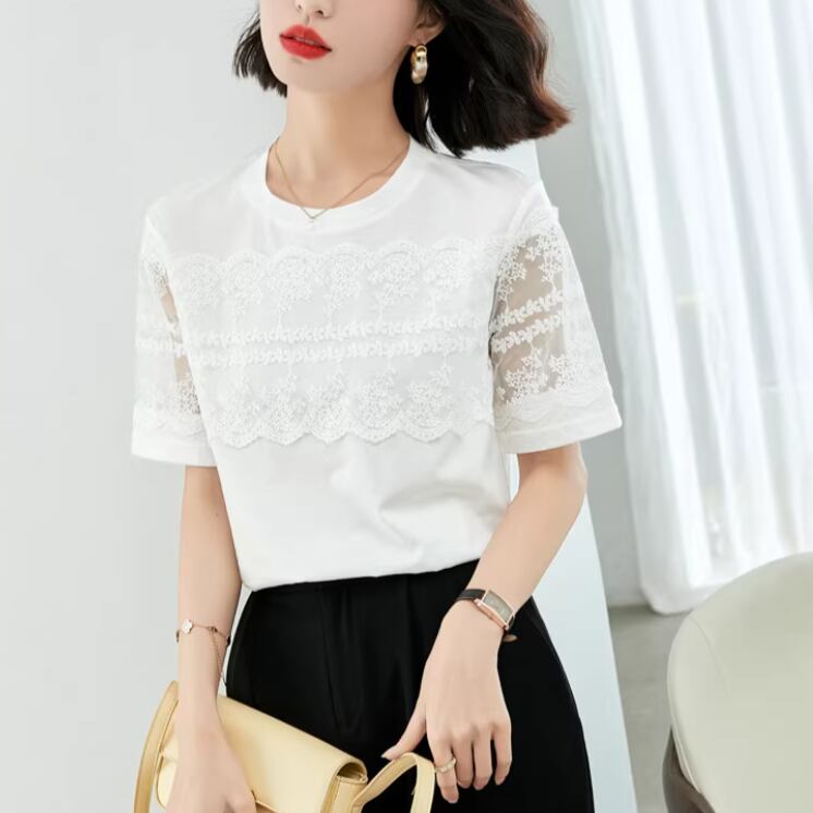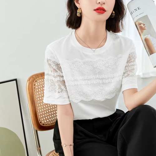 レースカラーアシメボタンドッキングトップス ・71106