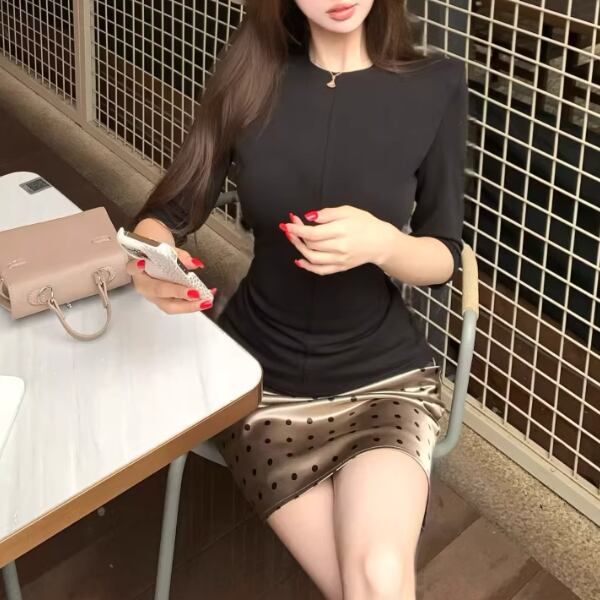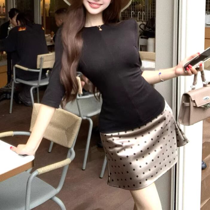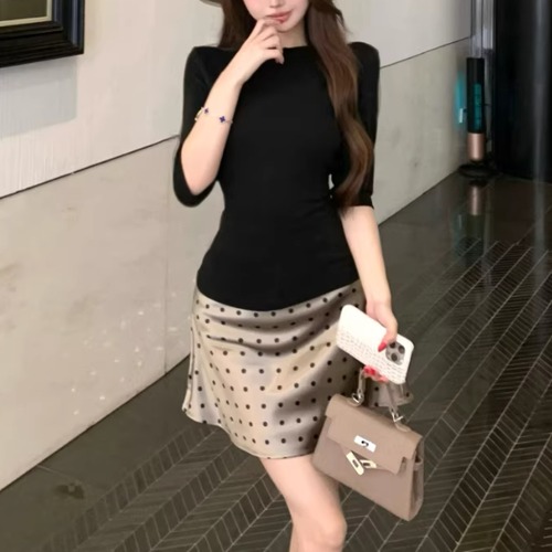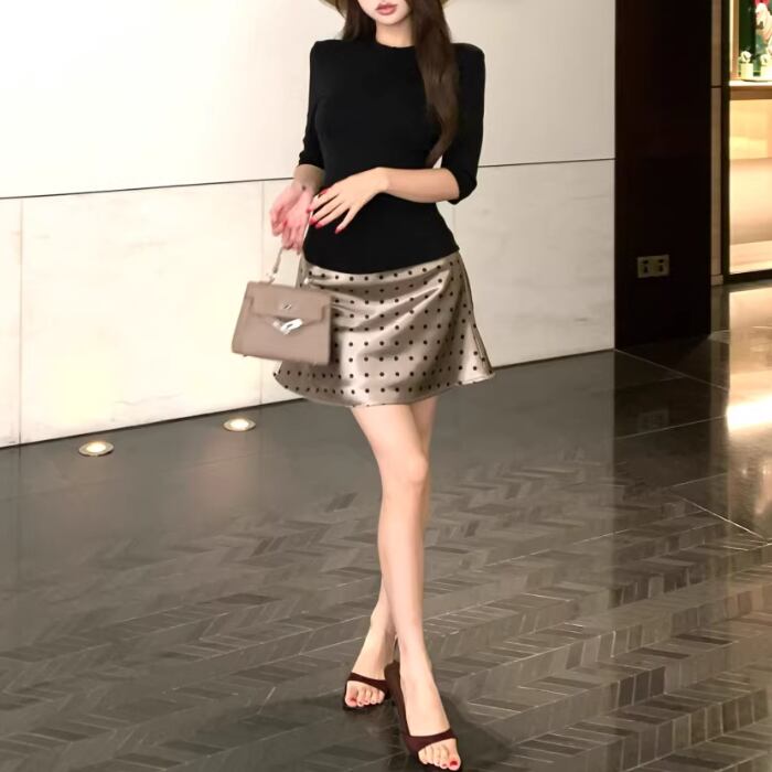 【2点セット】3色/パールデコフリルオフショルセーター+ニットミニスカート ・73703