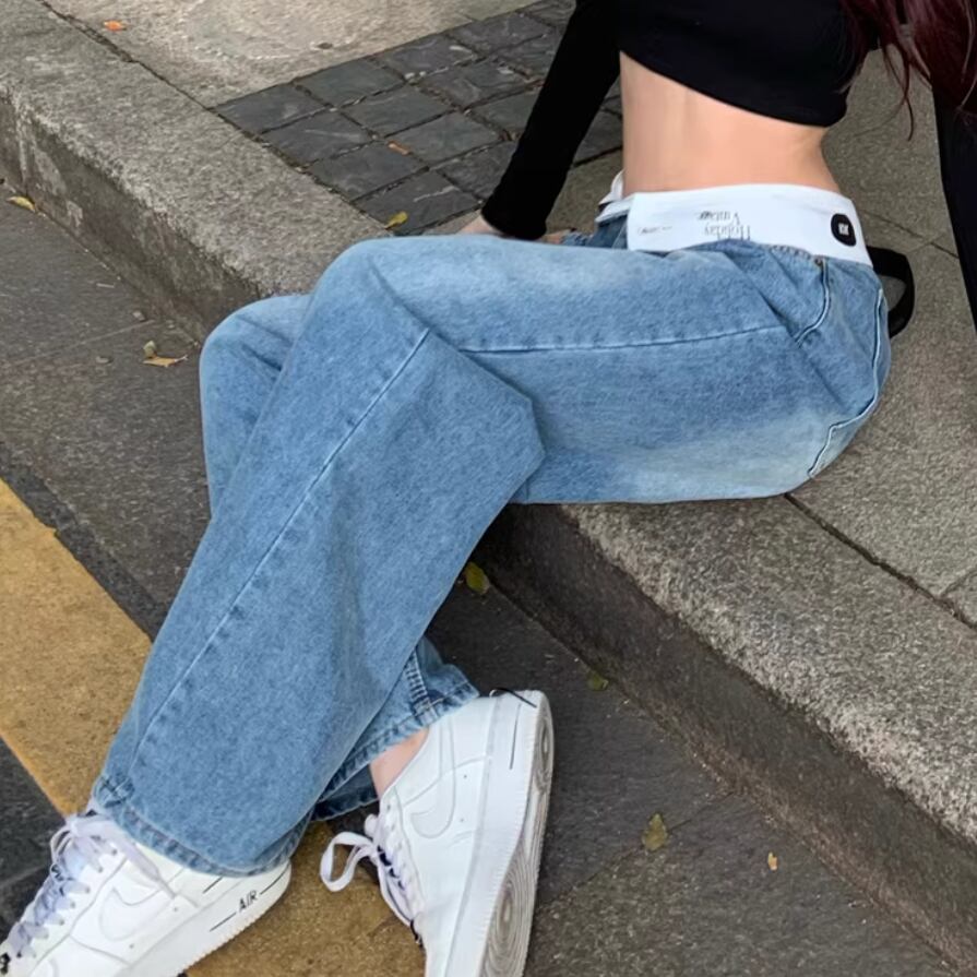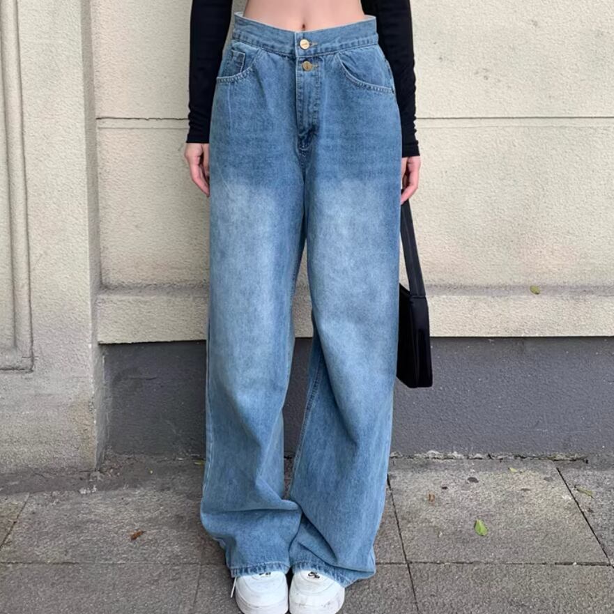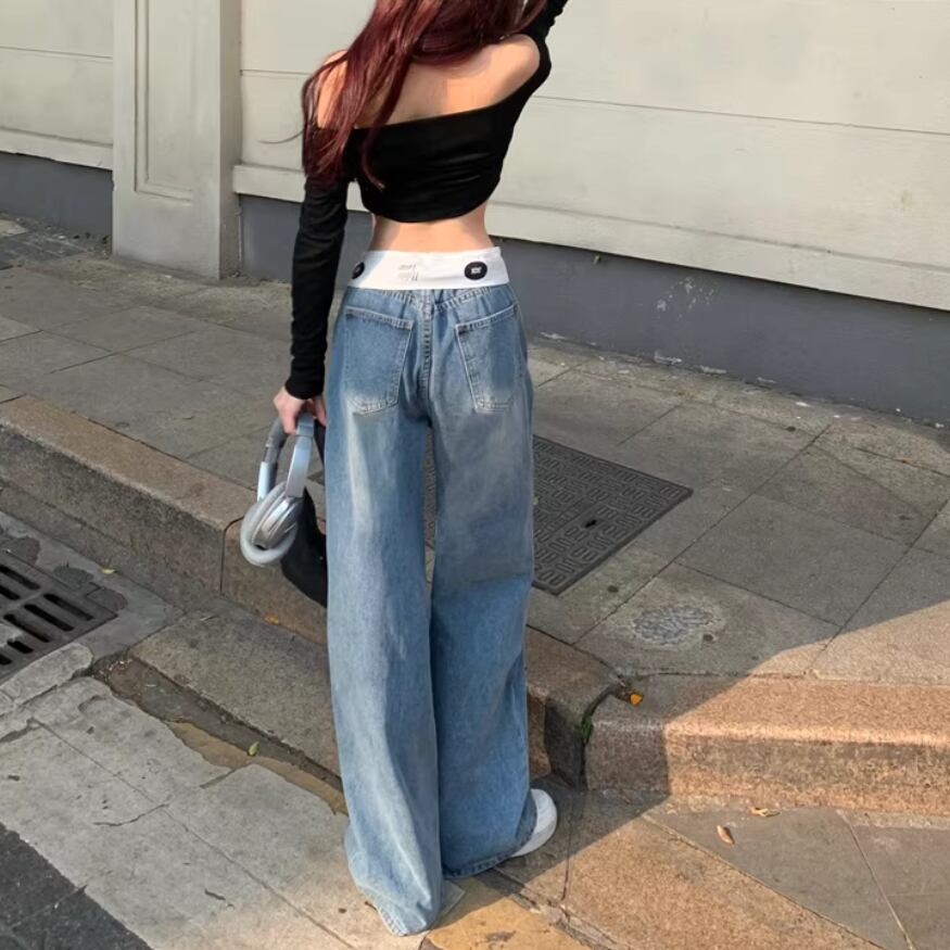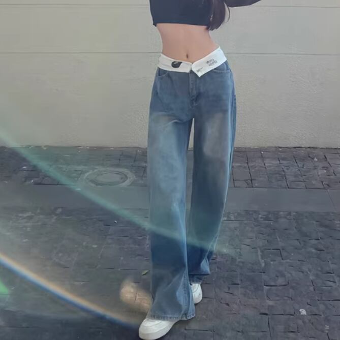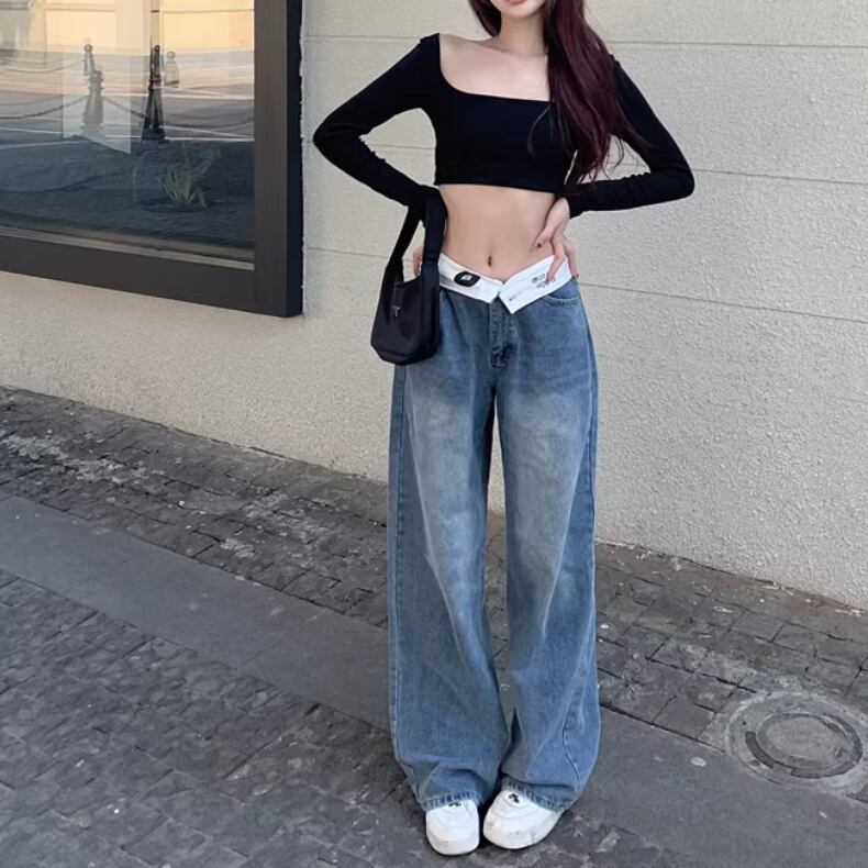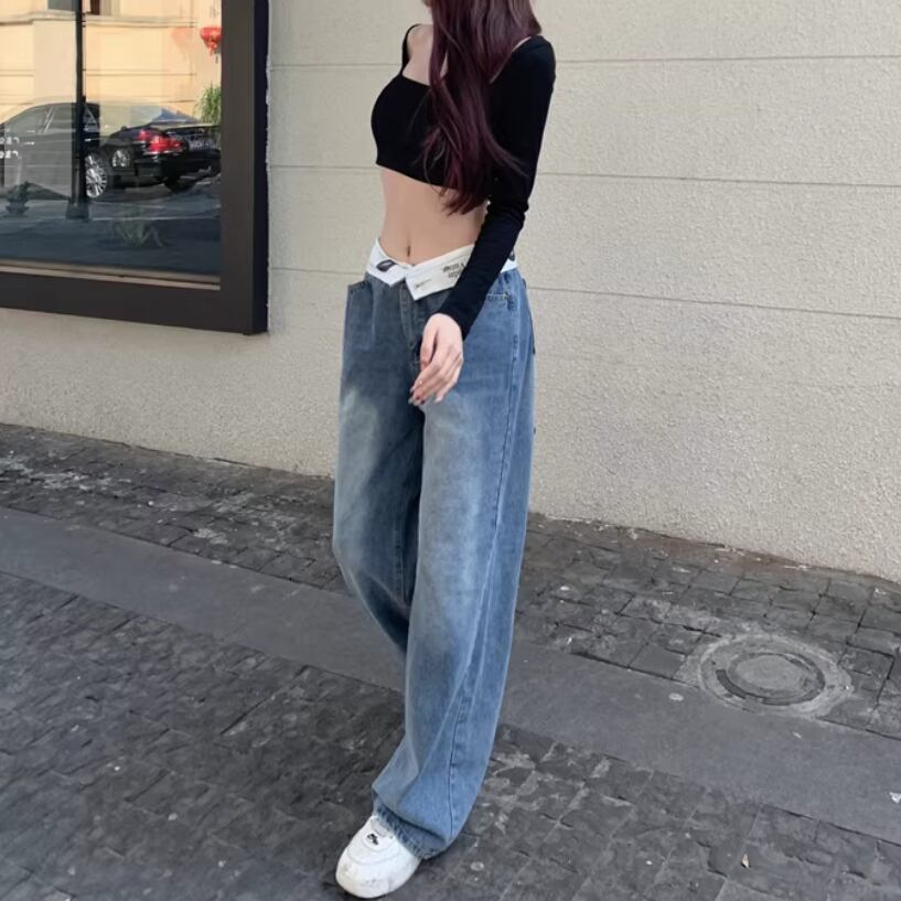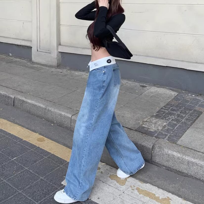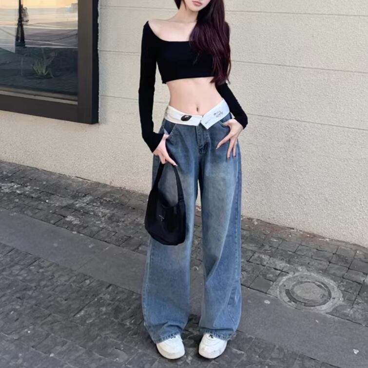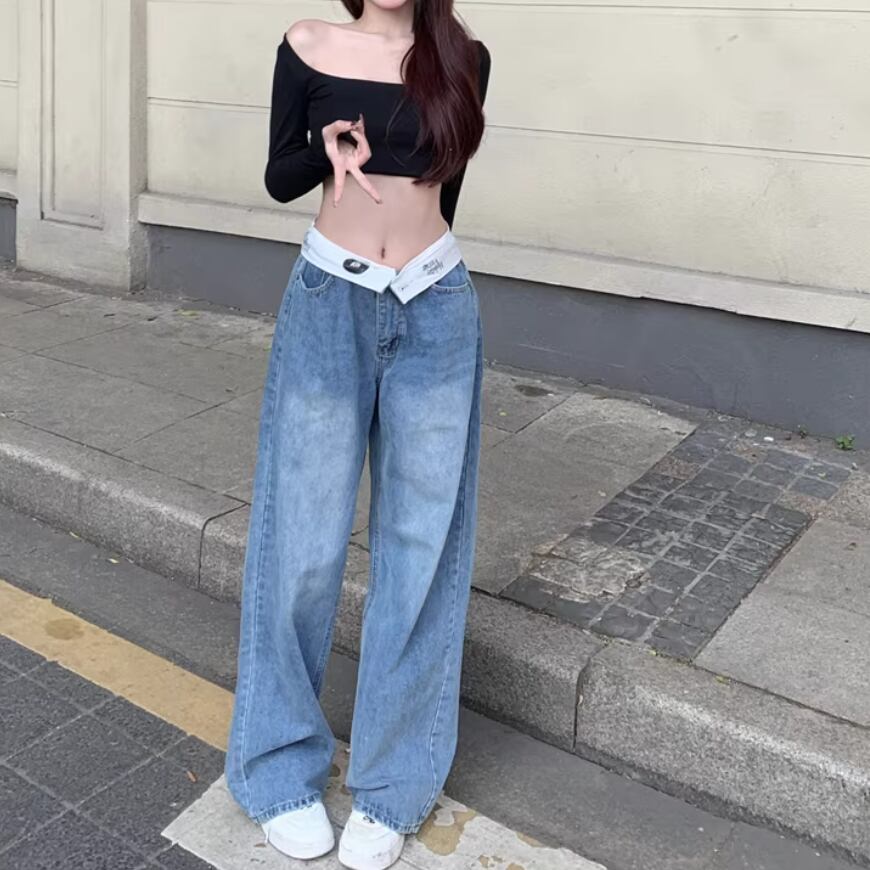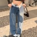 フラワー刺繍ワイドレッグストレートジーンズ ・57159