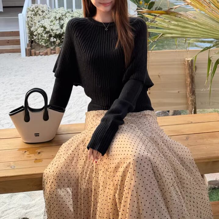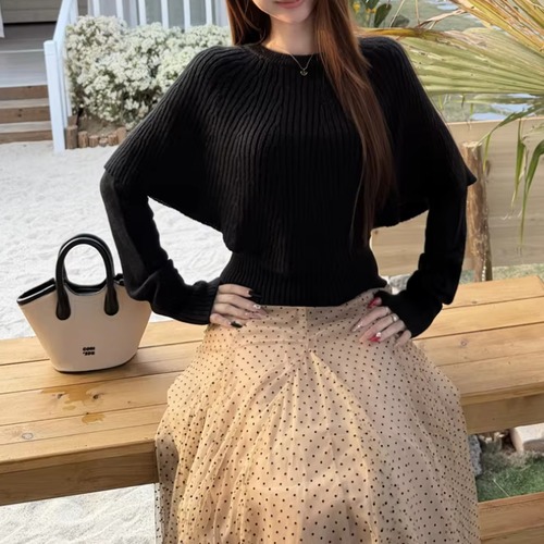 【2点セット】3色/パールデコフリルオフショルセーター+ニットミニスカート ・73703