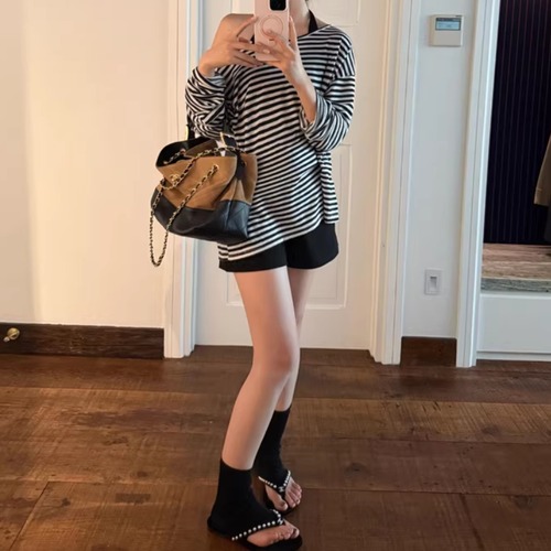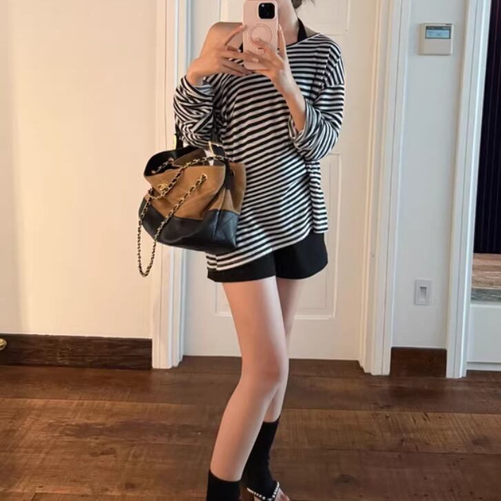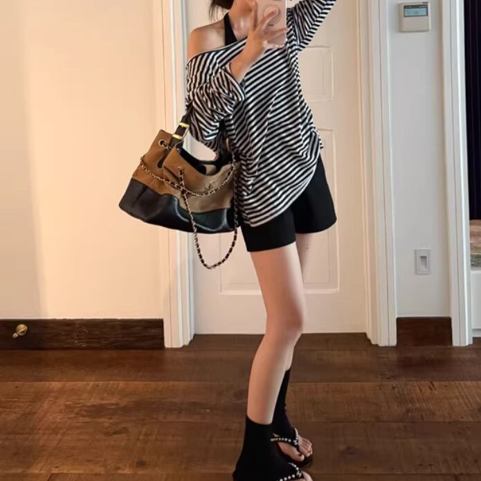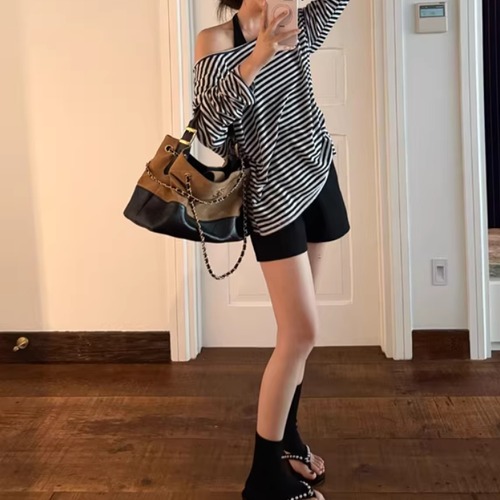 【2点セット】ストライプフライングスリーブシャツ+ハイウエストバルーンミニスカ ・69972