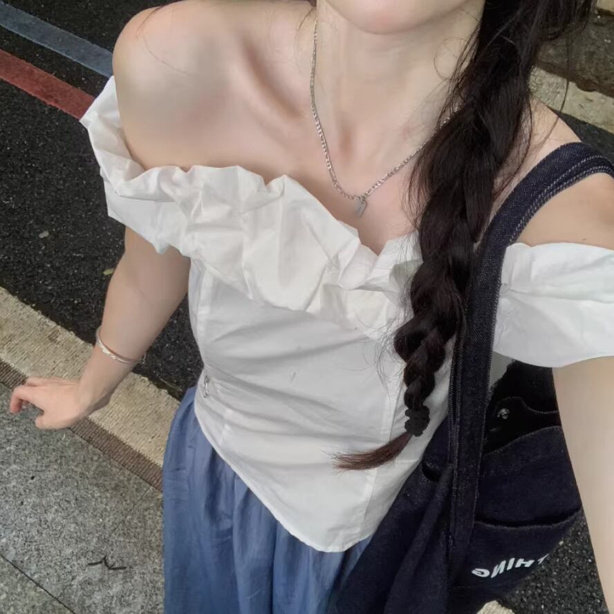 【2点セット】3色/パールデコフリルオフショルセーター+ニットミニスカート ・73703