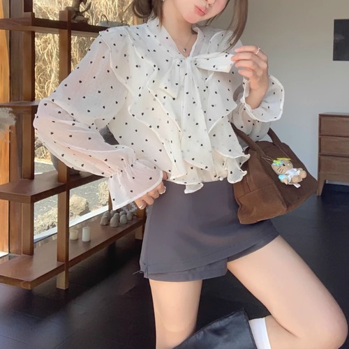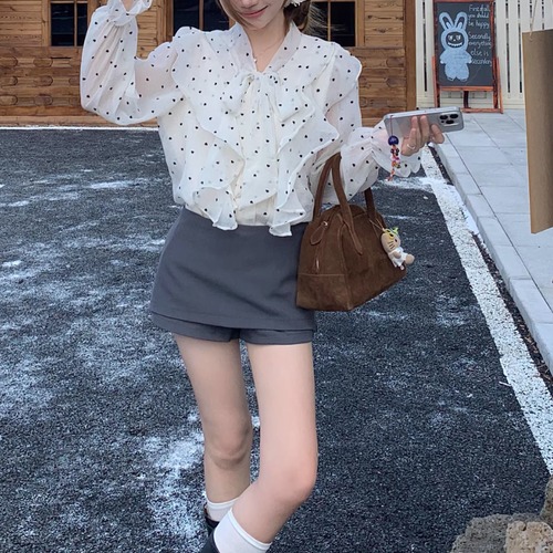 2色/Vネックタックデザインペプラムブラウス ・76114