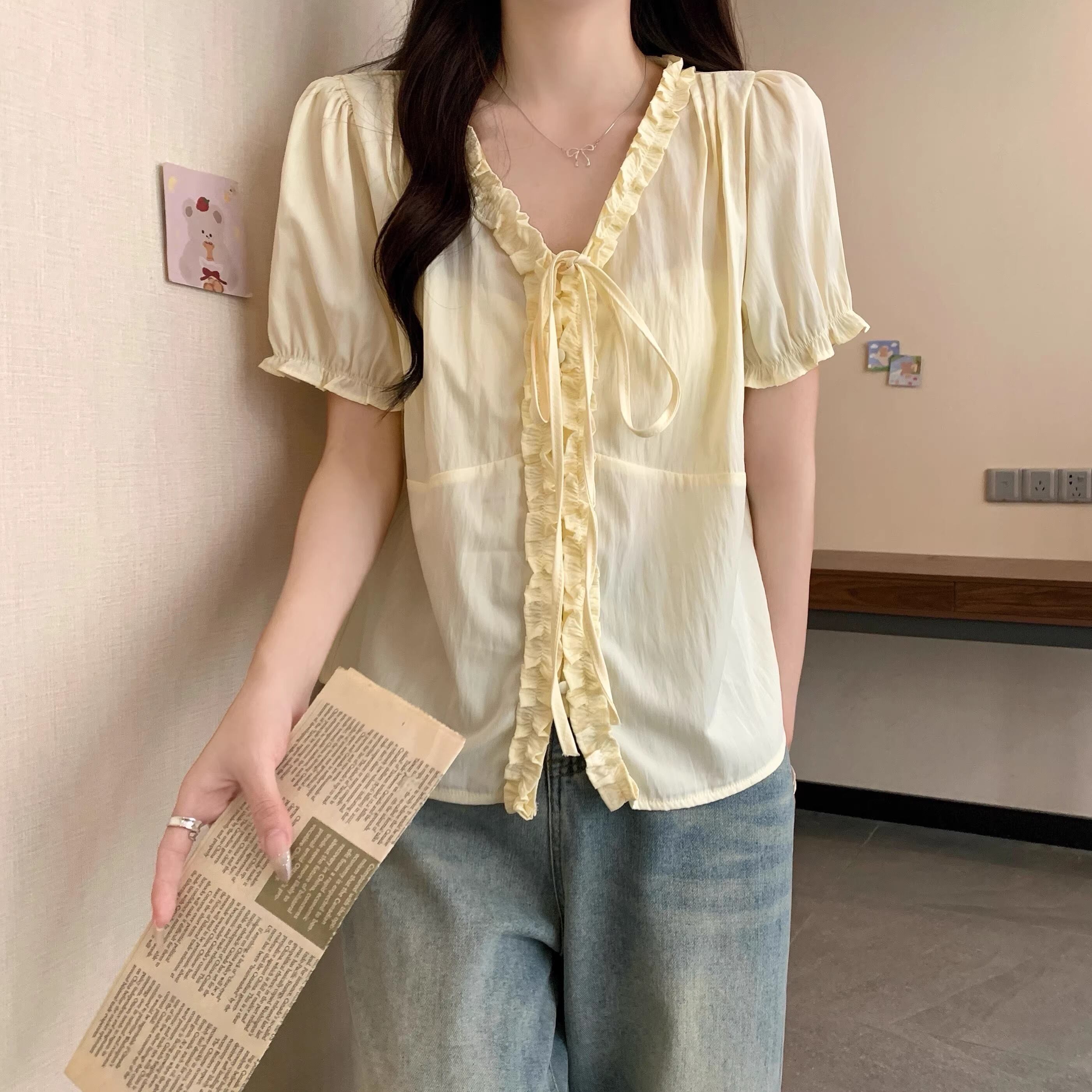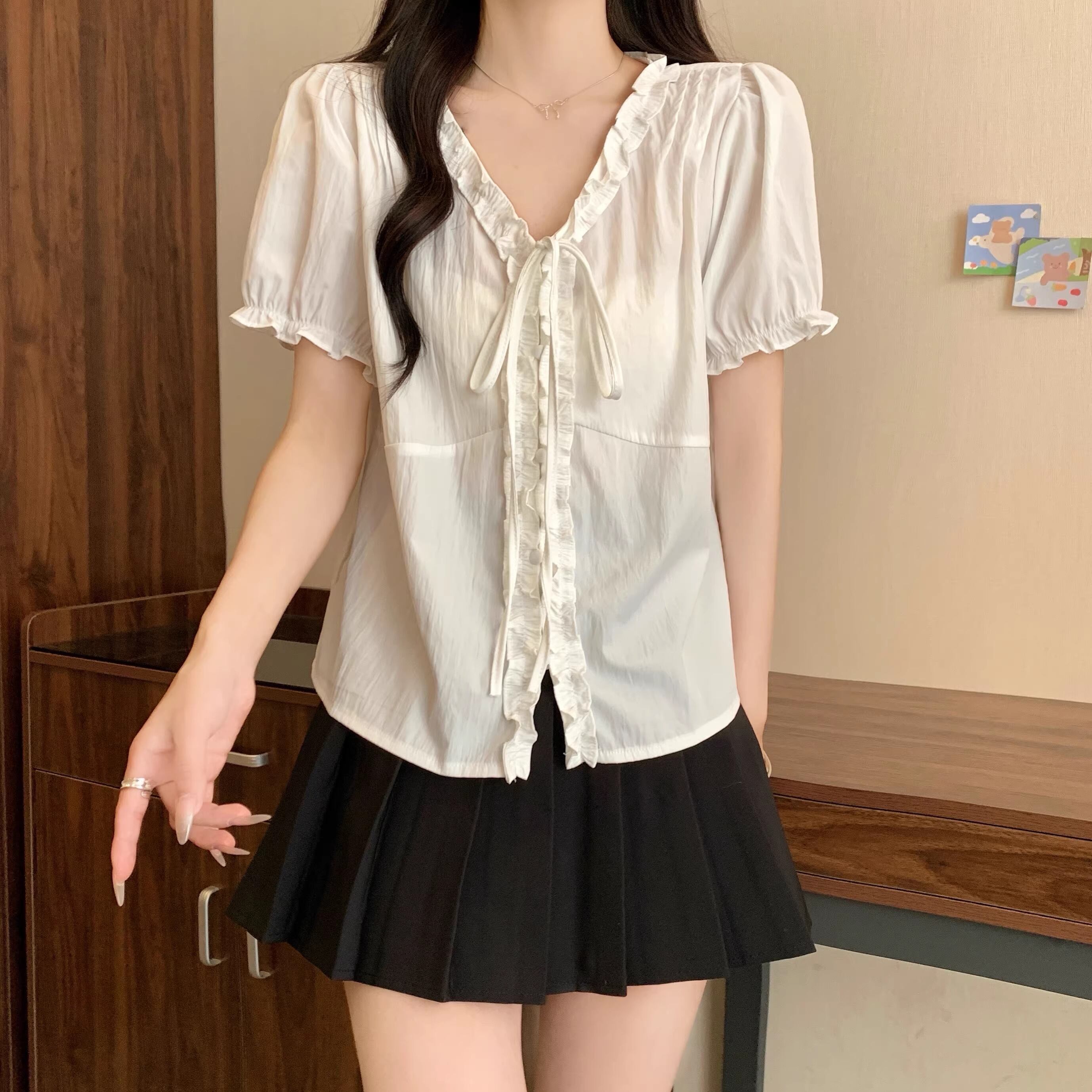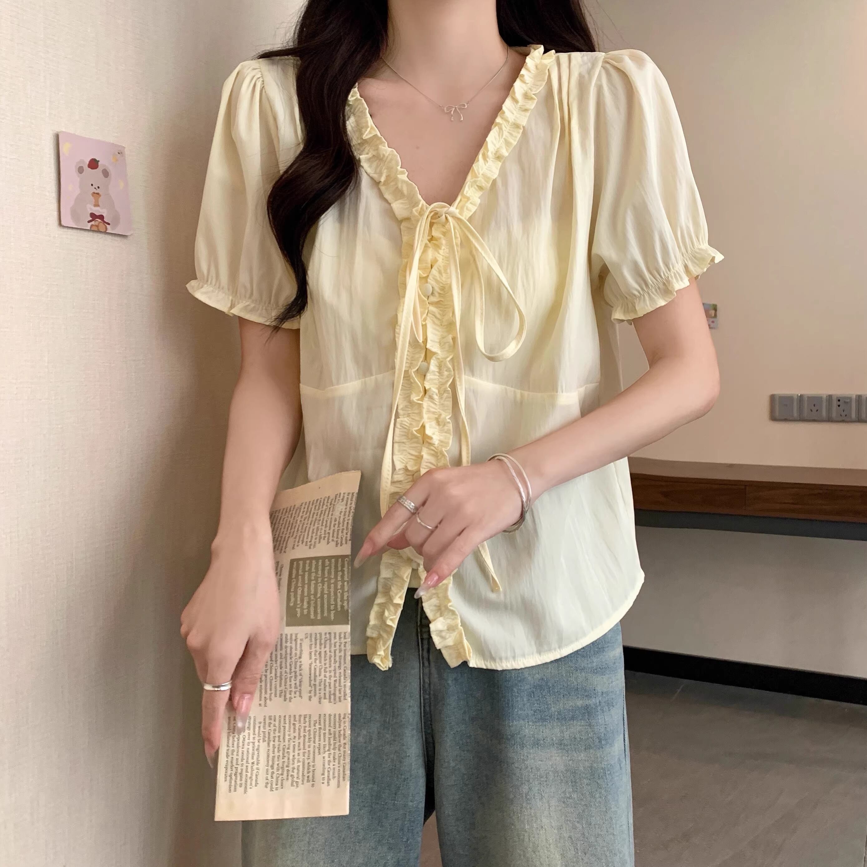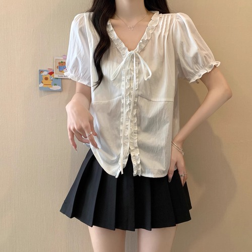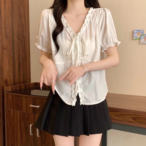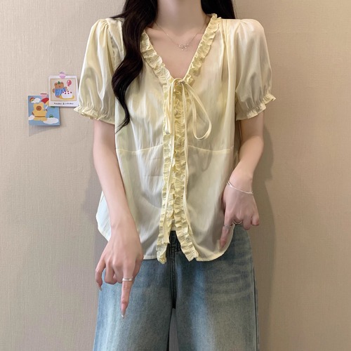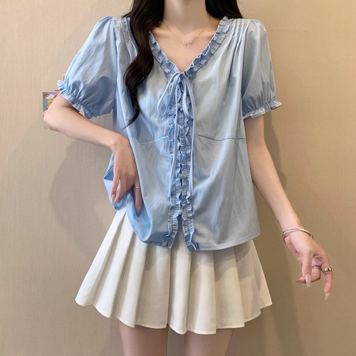 2色/Vネックタックデザインペプラムブラウス ・76114