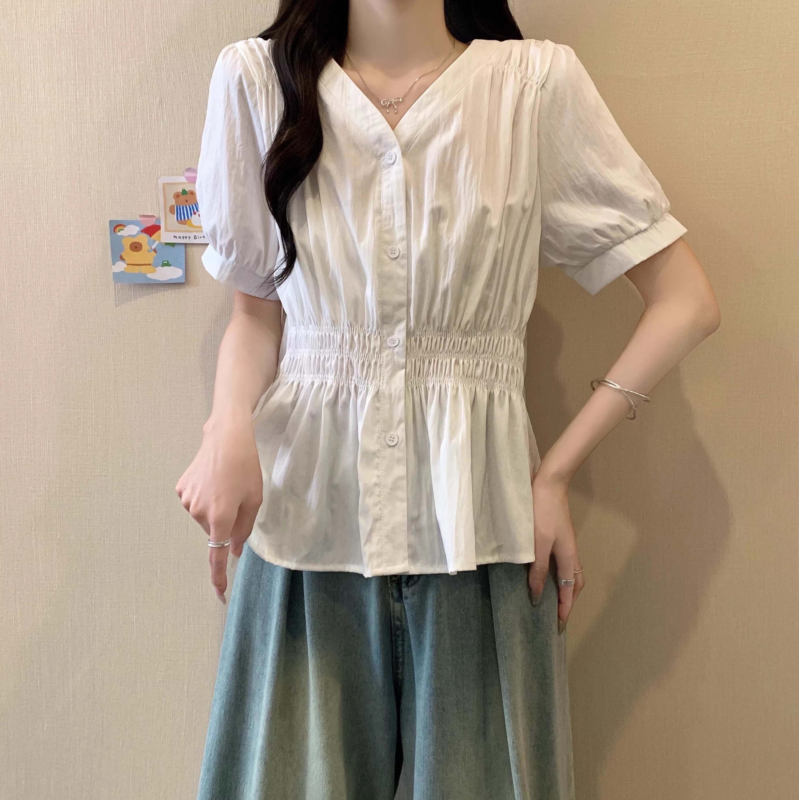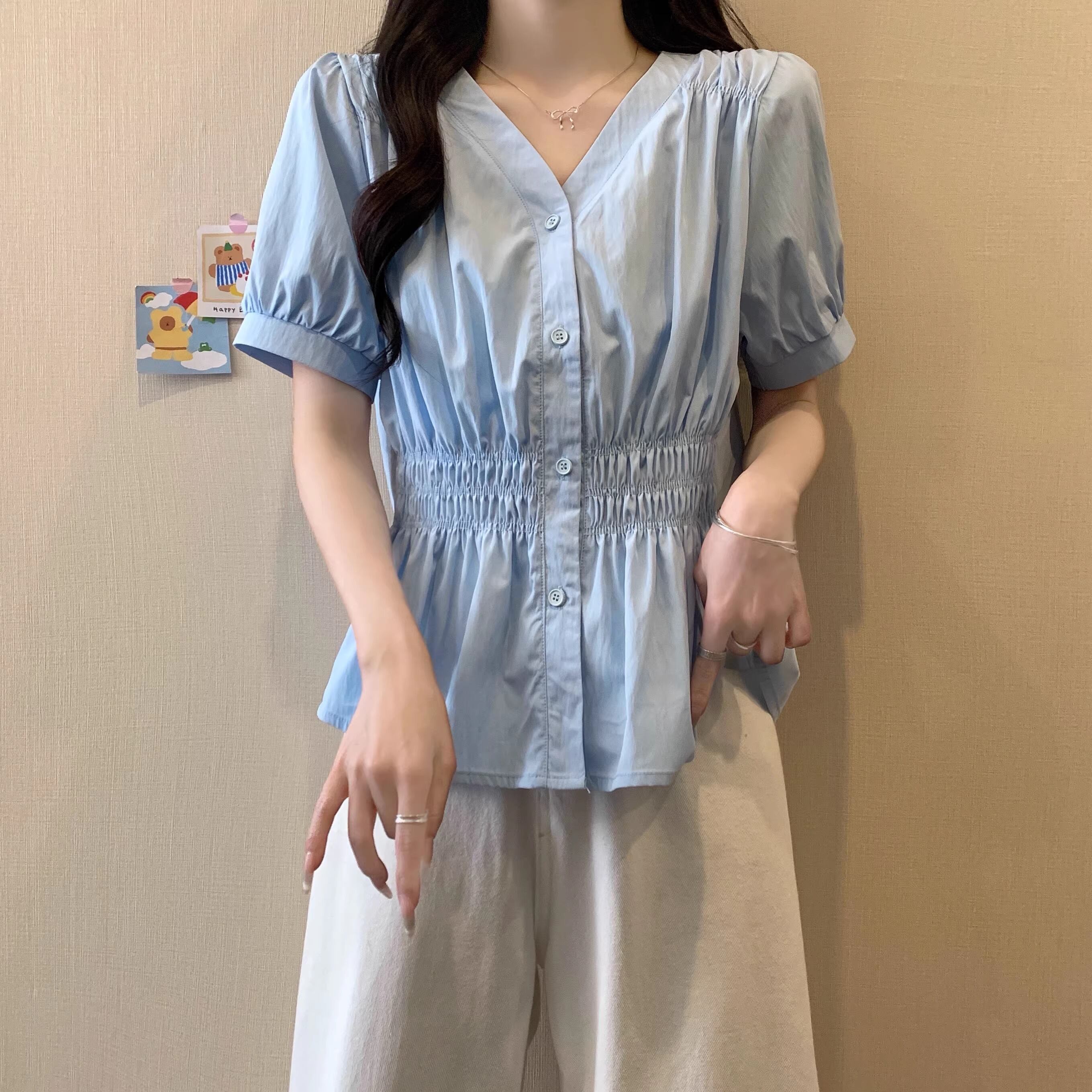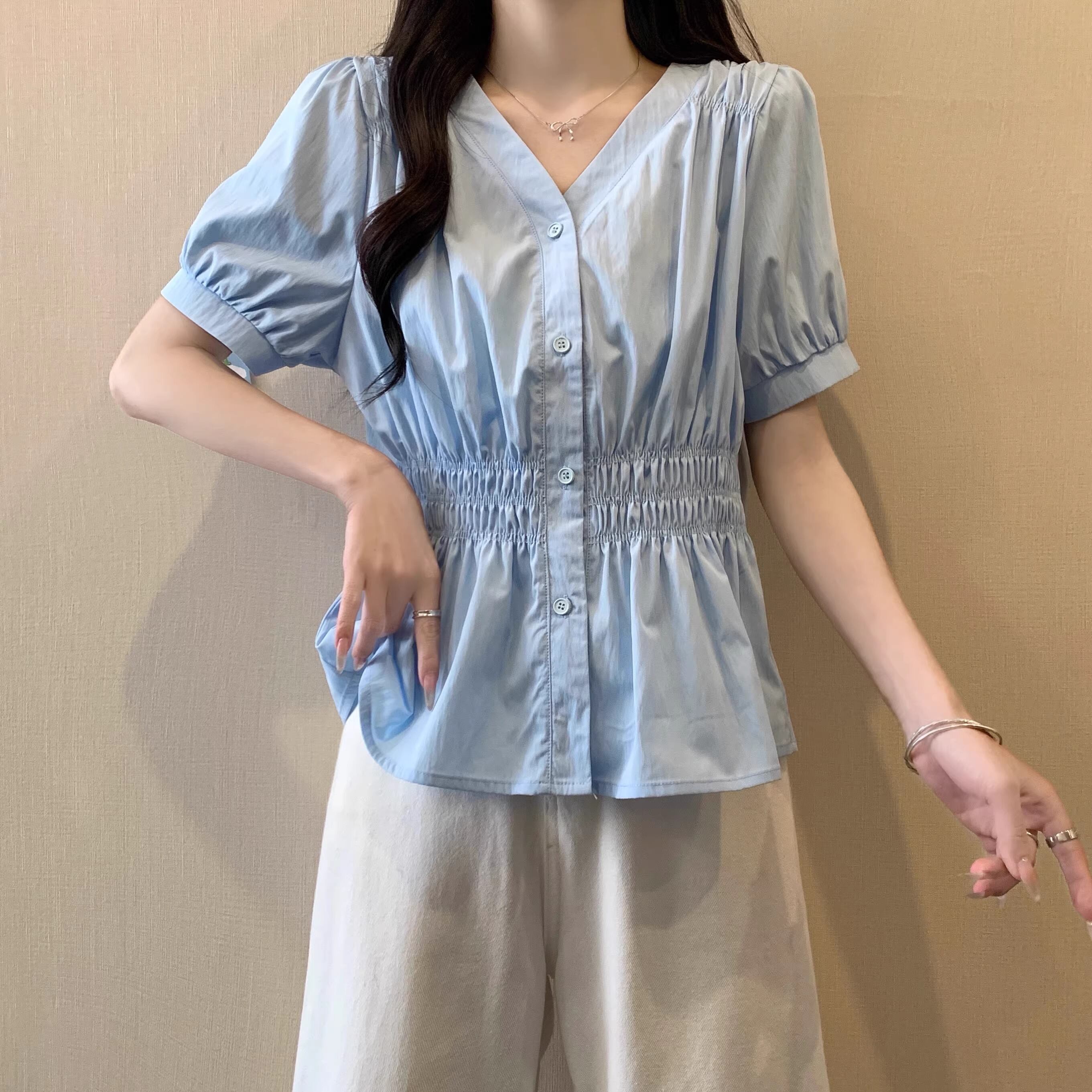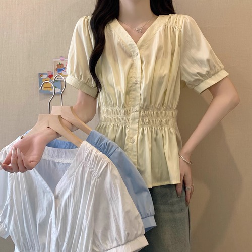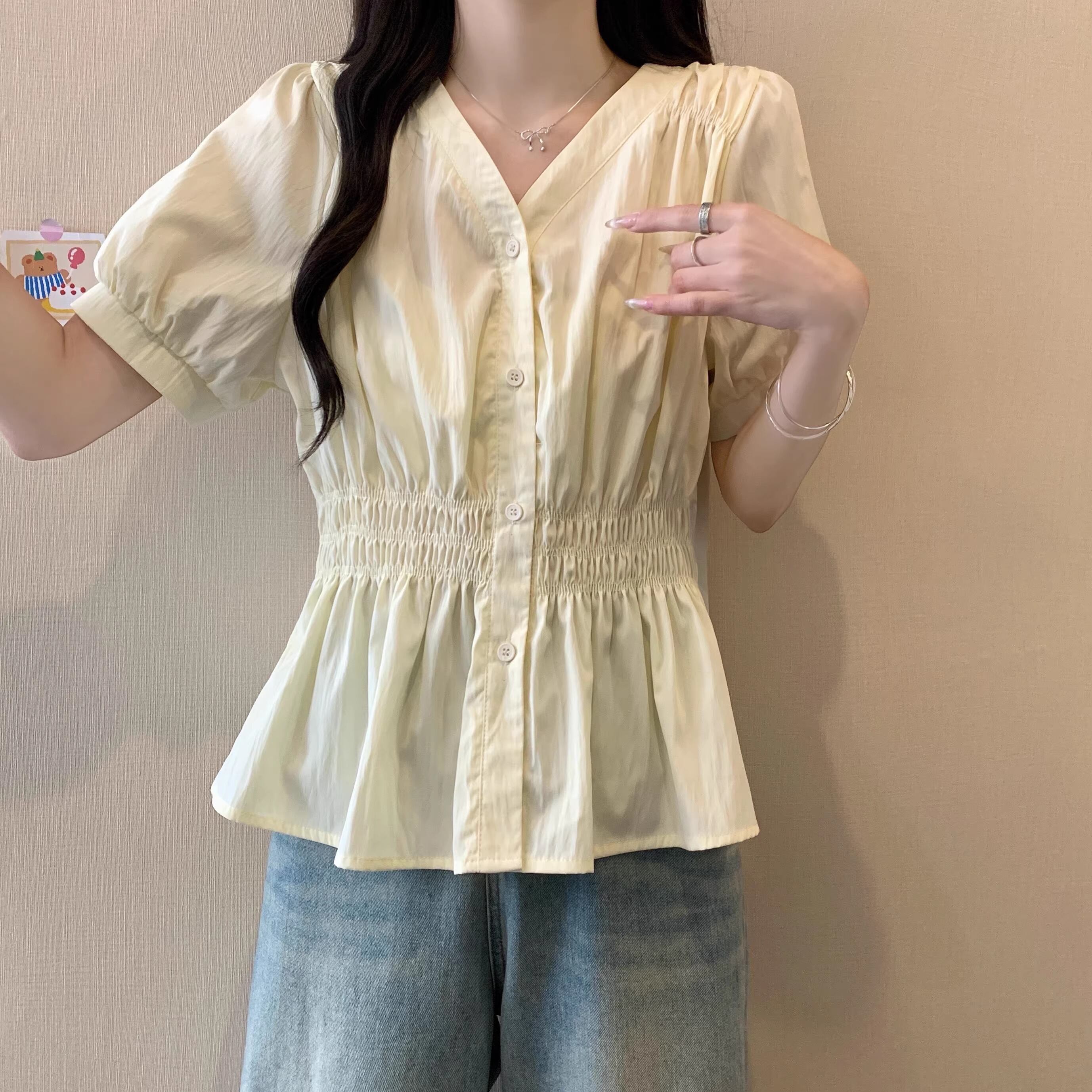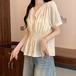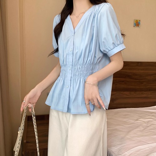 2色/Vネックタックデザインペプラムブラウス ・76114