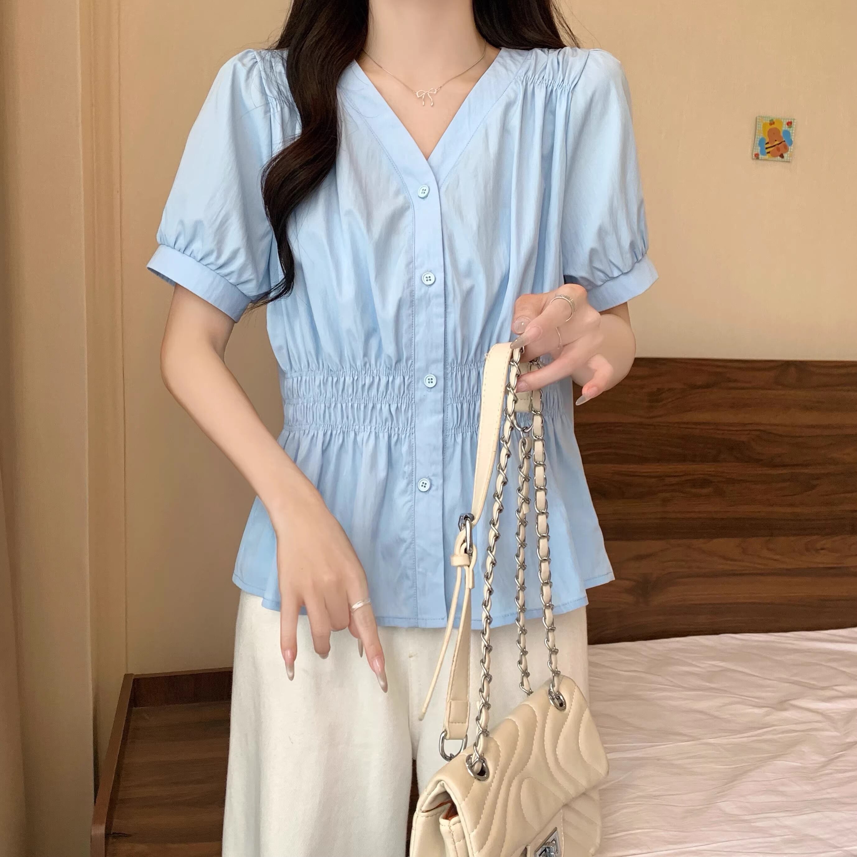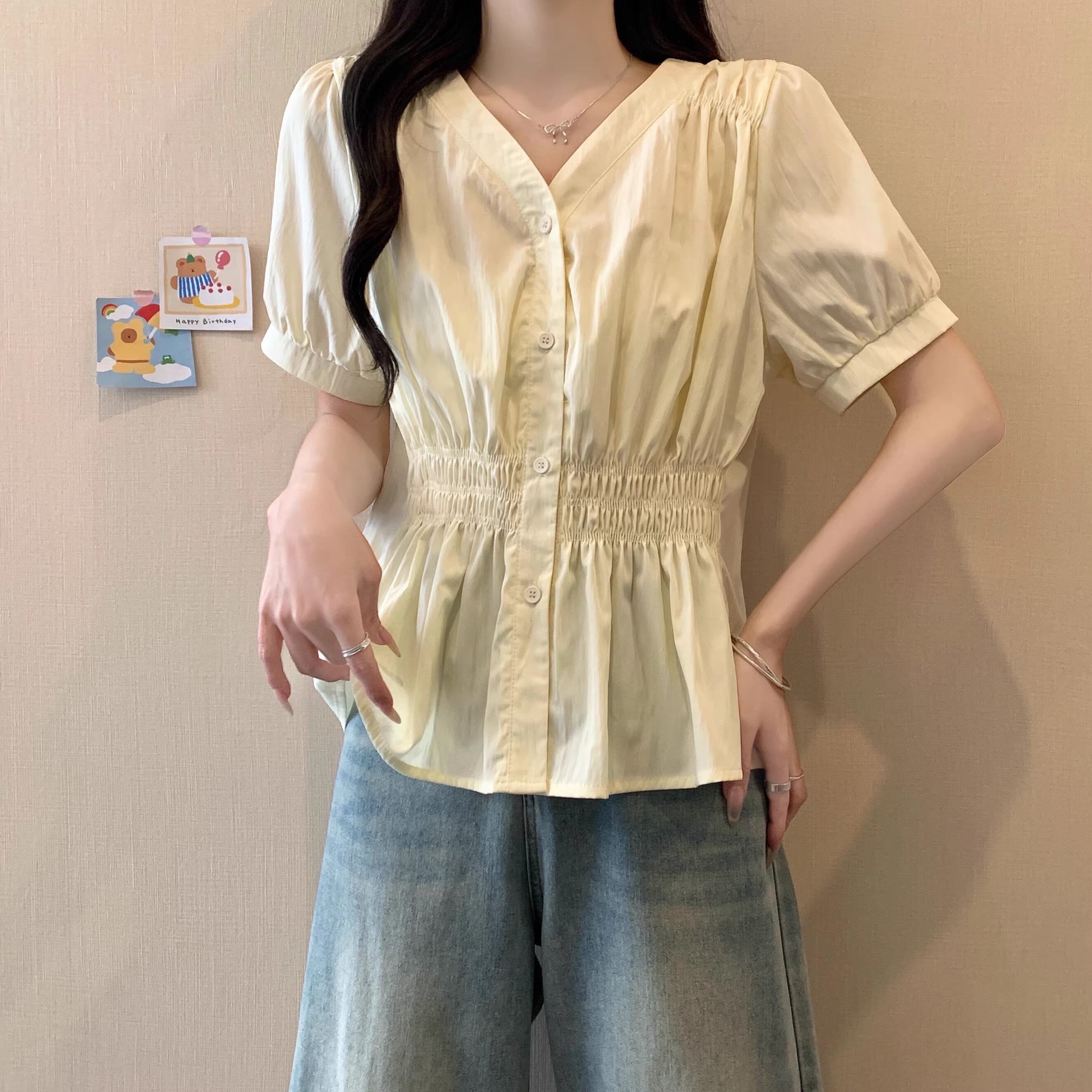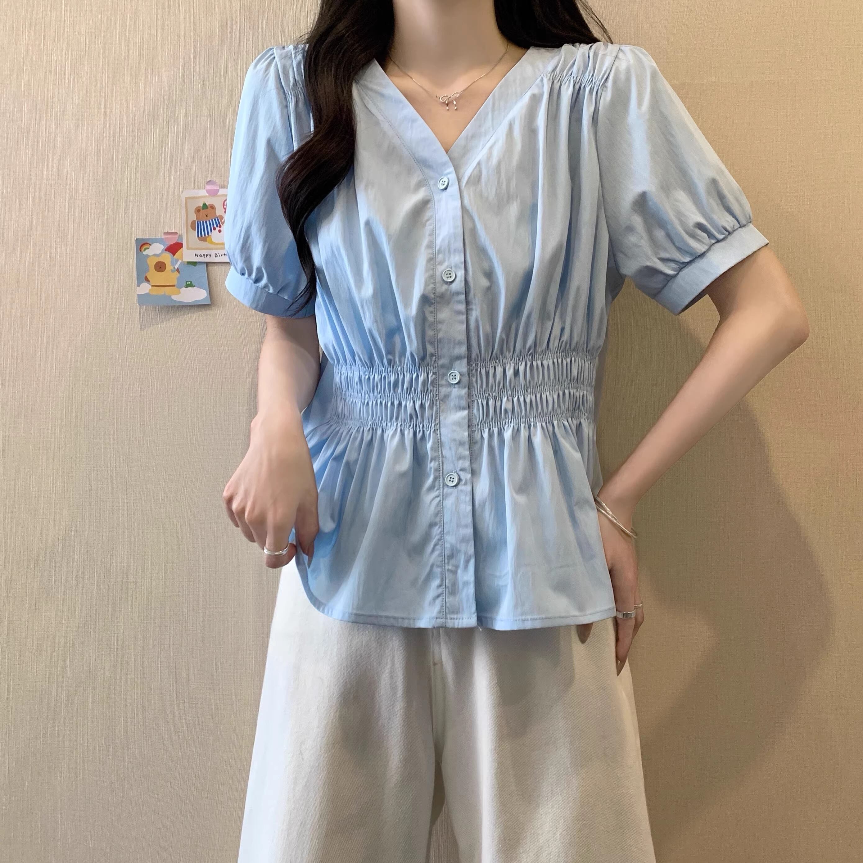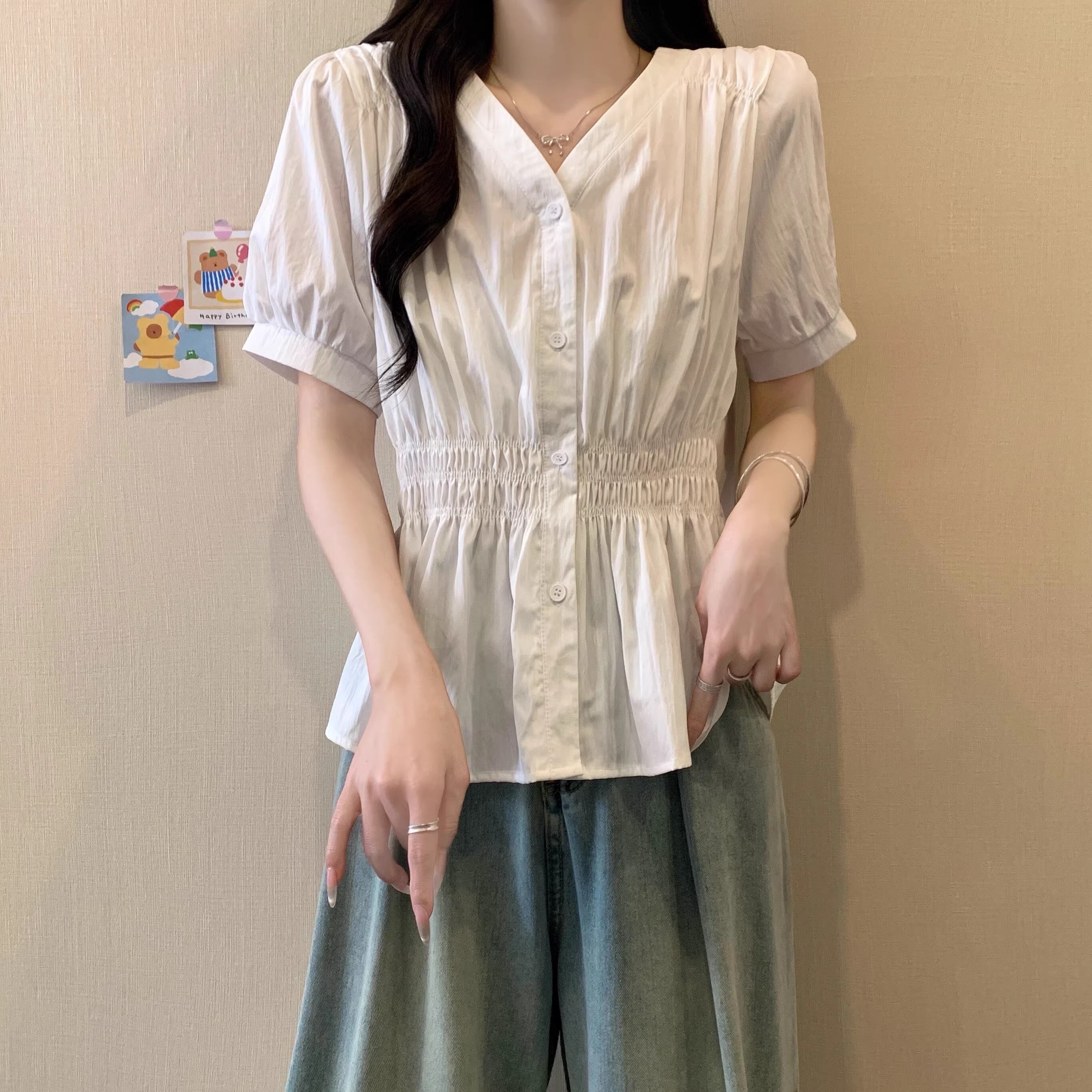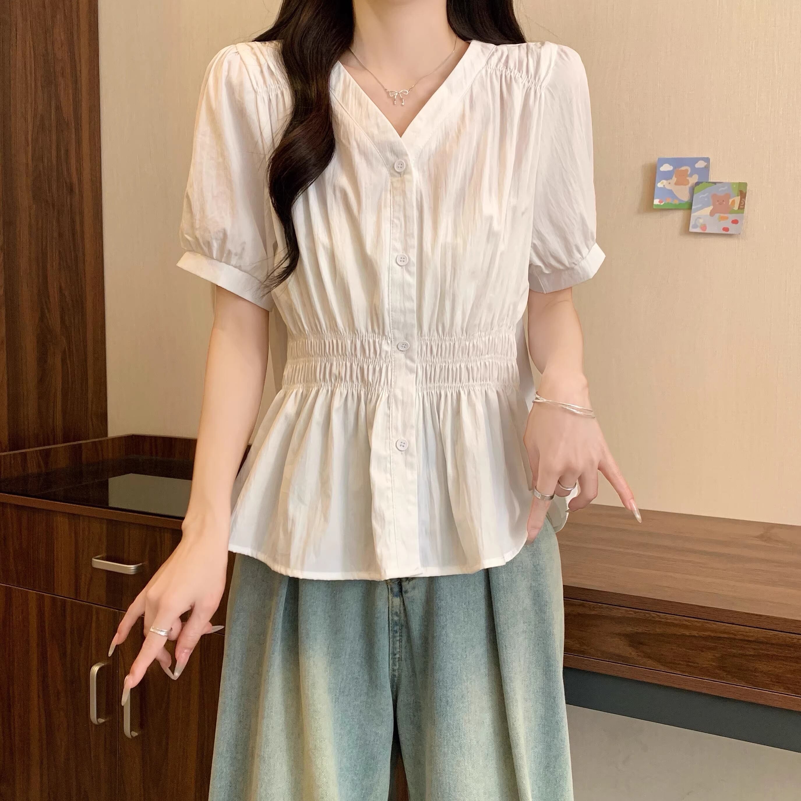 2色/Vネックタックデザインペプラムブラウス ・76114