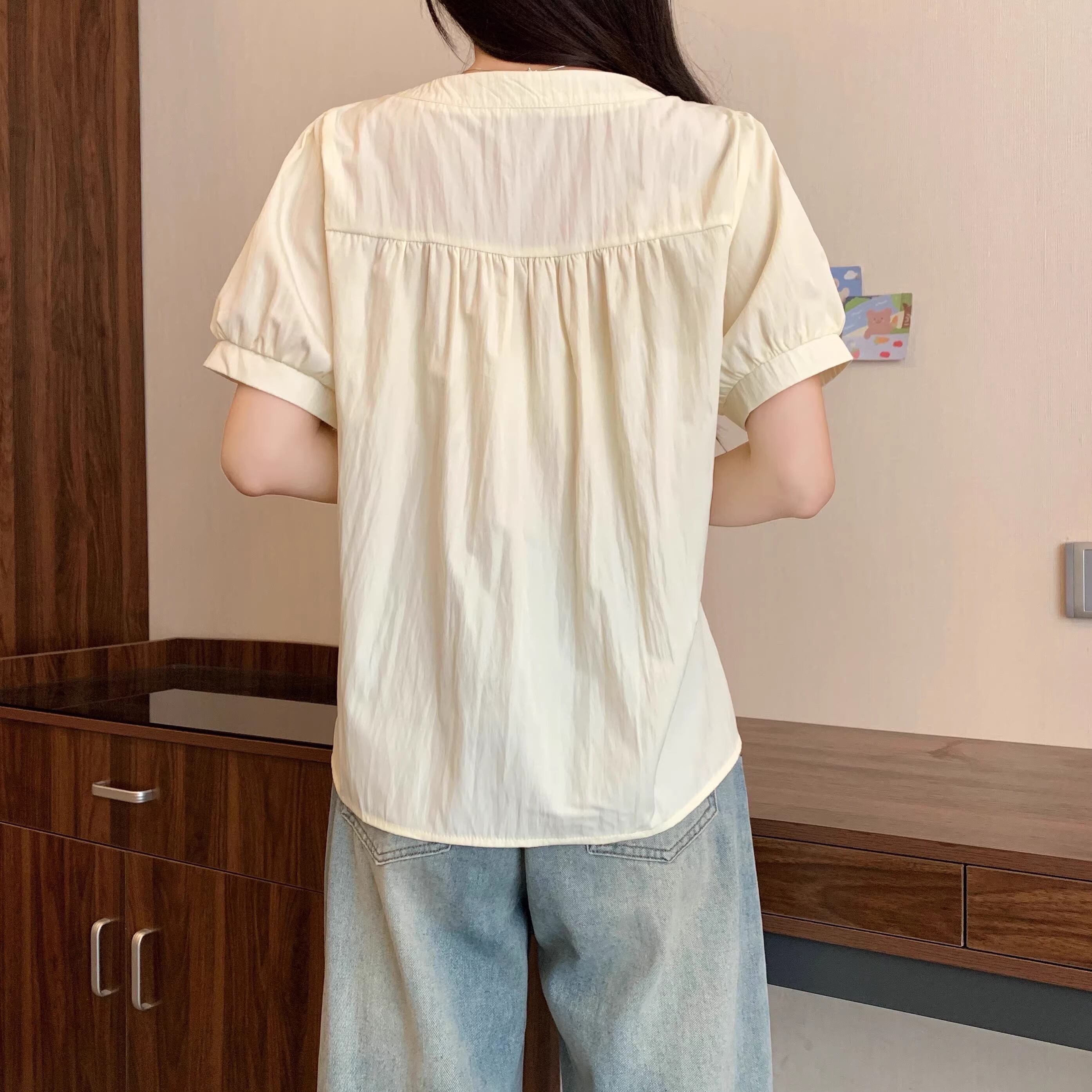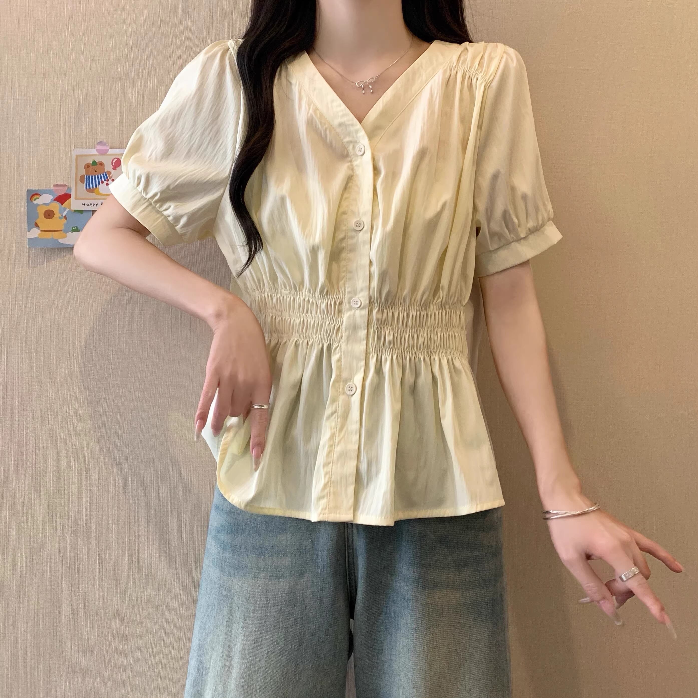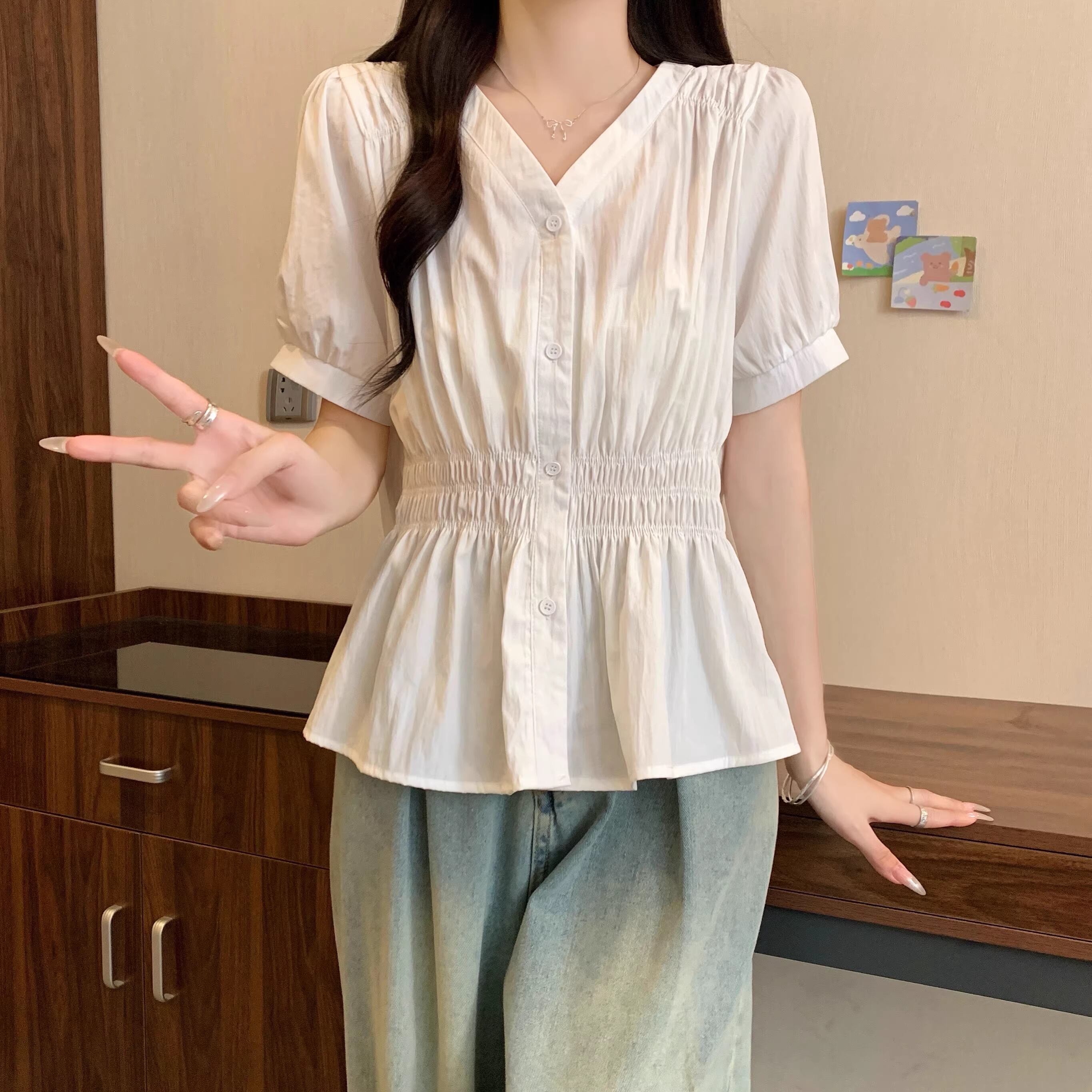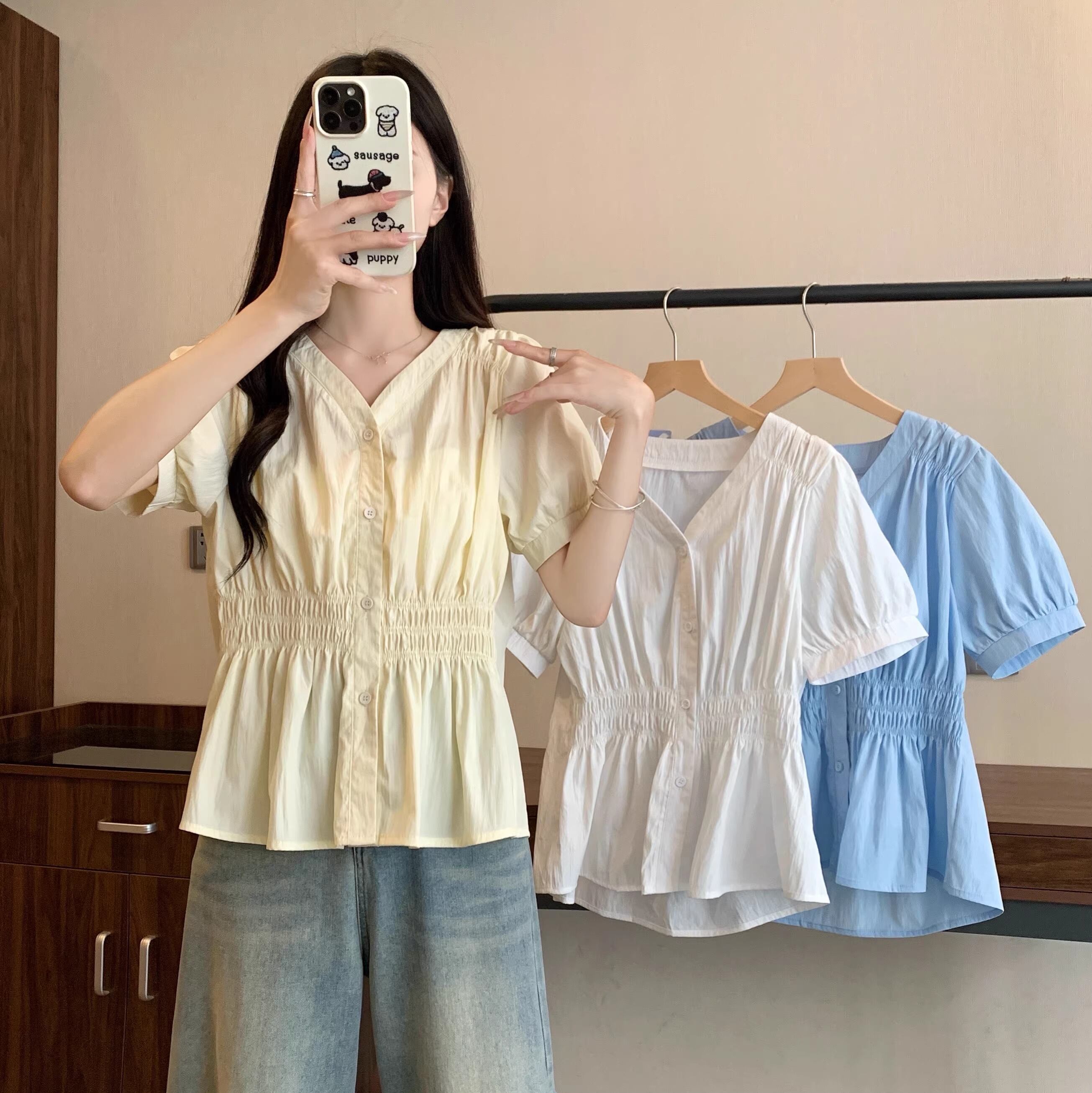 2色/Vネックタックデザインペプラムブラウス ・76114
