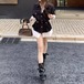 【2点セット】ストライプフライングスリーブシャツ+ハイウエストバルーンミニスカ ・69972