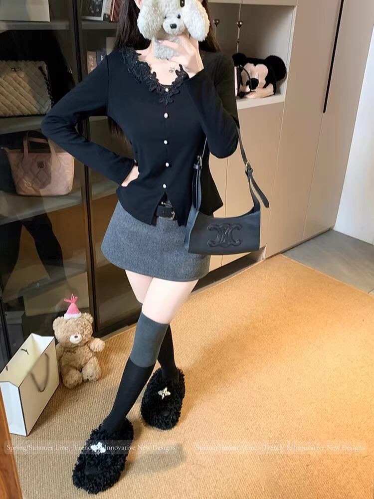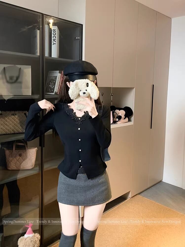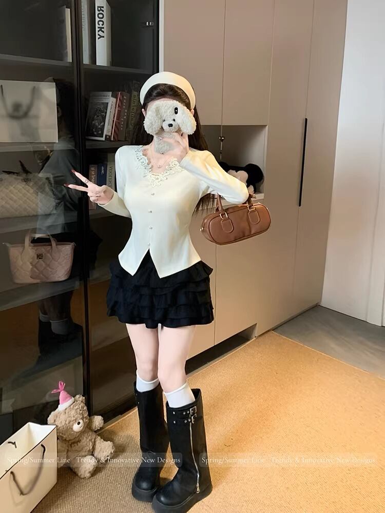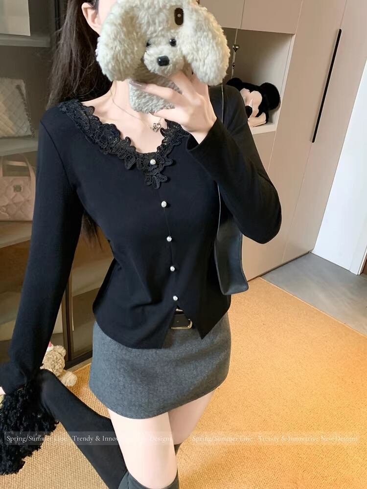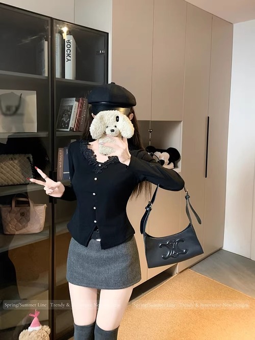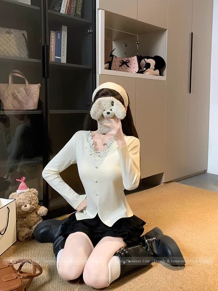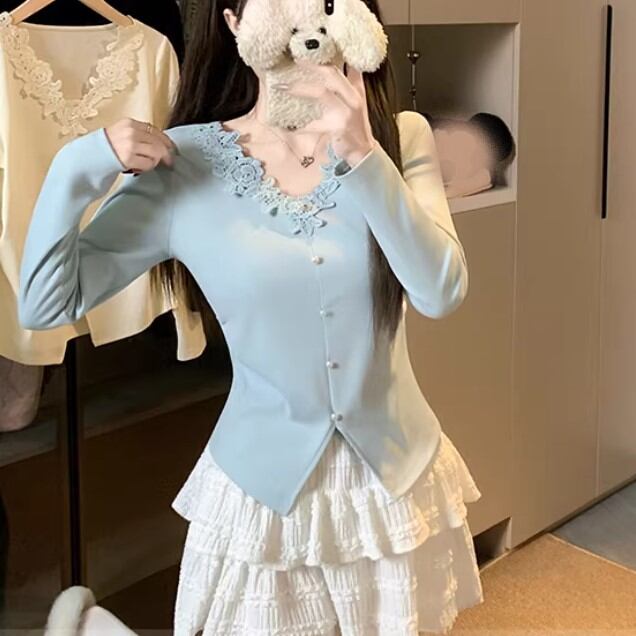 レースカラーアシメボタンドッキングトップス ・71106