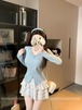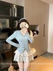 3色/レースアップVネックドッキングトップス ・73992