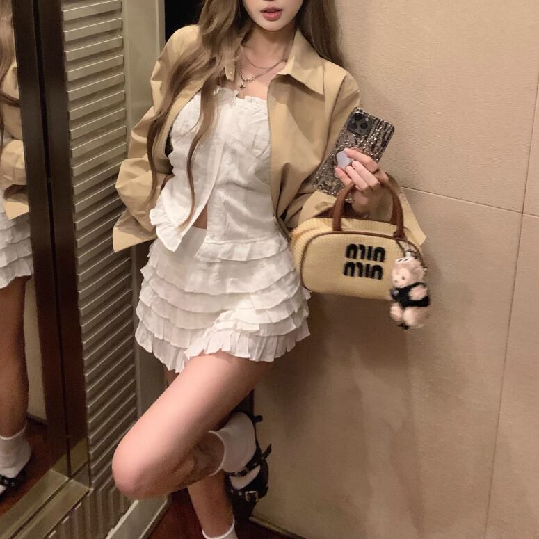 ▽Instagram「新作情報配信中」 フォローお願いいたします。 https://www.instagram.com/sucrier_closet/ ▼サイズ [ Sサイズ ] ブルゾン:着丈55cm バスト108cm 肩幅42cm 袖丈57cm ベアトップ:着丈34cm バスト74-84cm スカート:着丈30cm ウエスト68cm ヒップ94cm [ Mサイズ ] ブルゾン:着丈56cm バスト112cm 肩幅43cm 袖丈58cm ベアトップ:着丈35cm バスト78-88cm スカート:着丈31cm ウエスト72cm ヒップ98cm ※1-3cm程度の誤差がある場合がございます。予めご了承ください。 ▼シーズン 春,夏 ▼同じカテゴリの商品はこちら https://www.sucrier.jp/categories/1737171 ▽お支払い方法 ・クレジットカード決済 ・キャリア決済 (docomo/au/Softbank/Y!mobile) ・後払い決済 (商品お届け後コンビニ払いなど) ▽注意点 ※こちらの商品は決済から10日-3週間前後でのお届けとなります。 ※配送日時指定等に関しては、ご指定できないことご了承くださいませ。 ※できる限り早くお届けできるように手配させて頂きます。 ※検品はしておりますが、もし届いた商品に不備がありましたら、誠実に対応させていただきます。 商品ID:SC075898