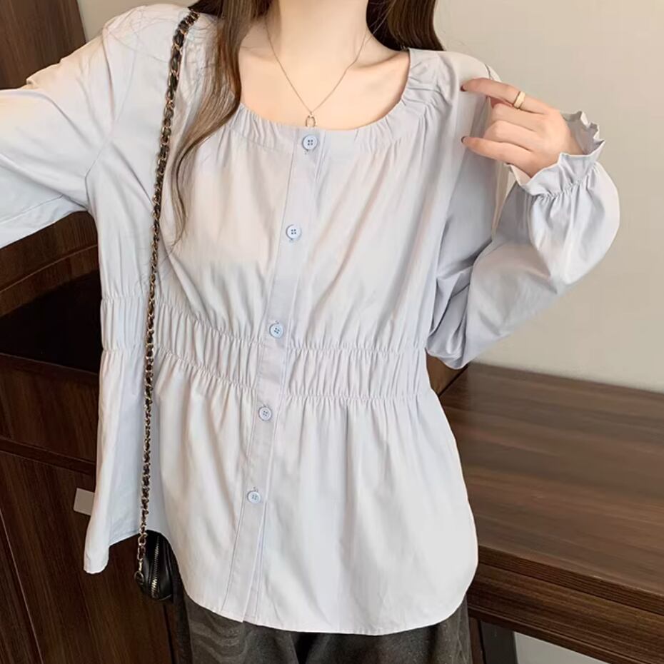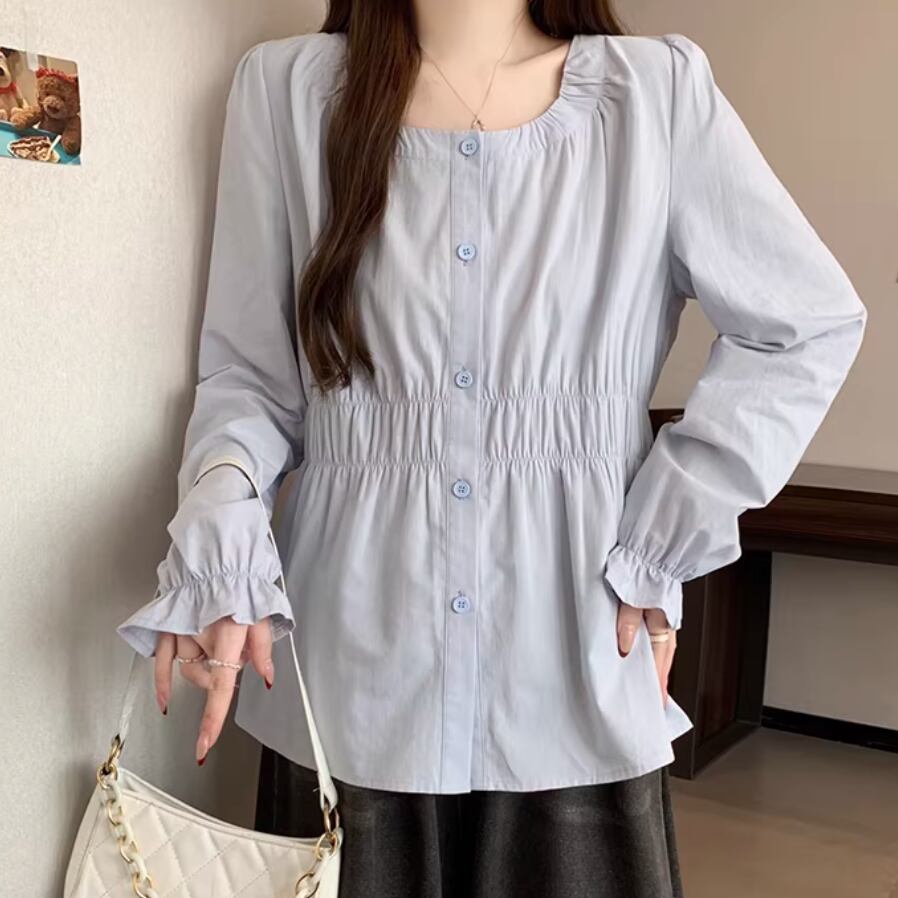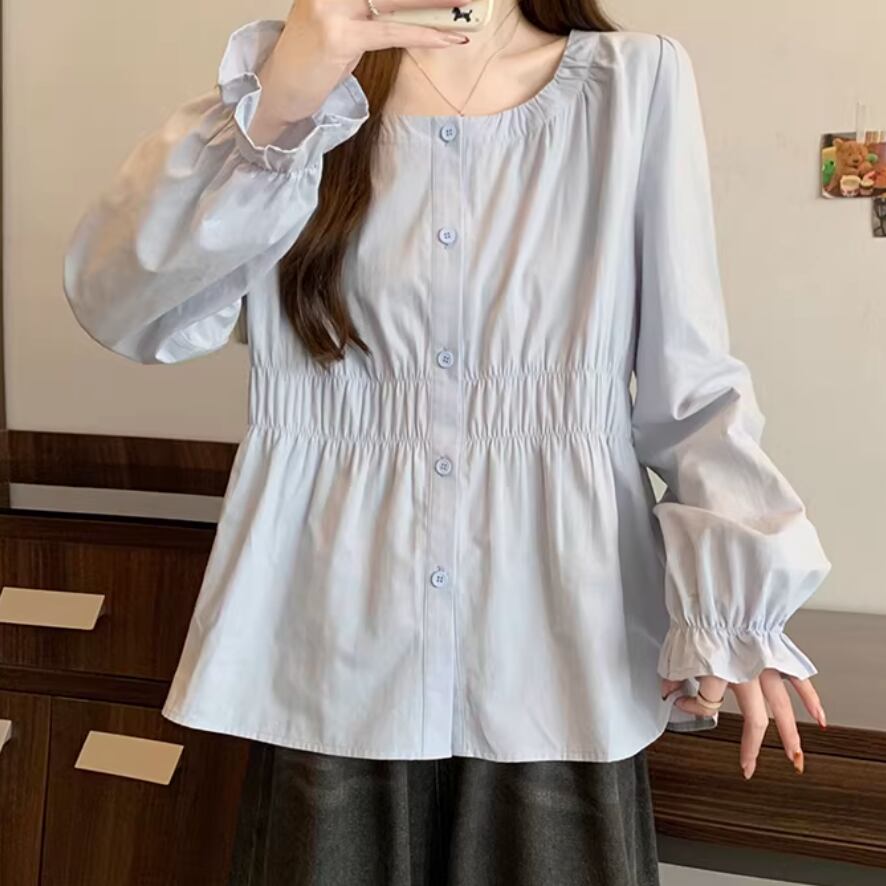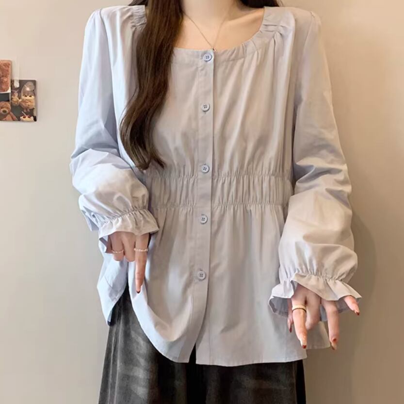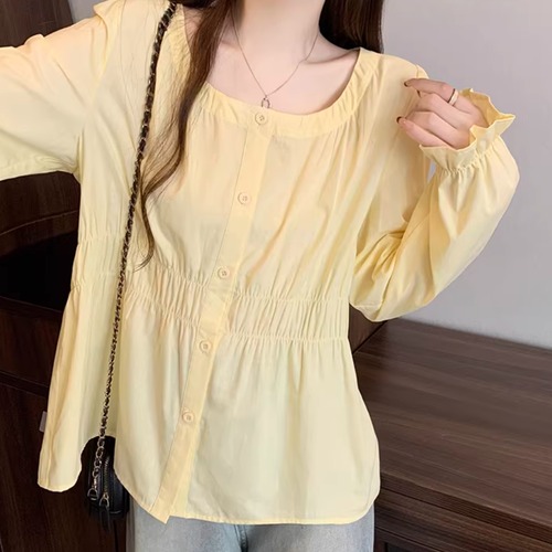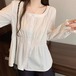 レースカラーアシメボタンドッキングトップス ・71106