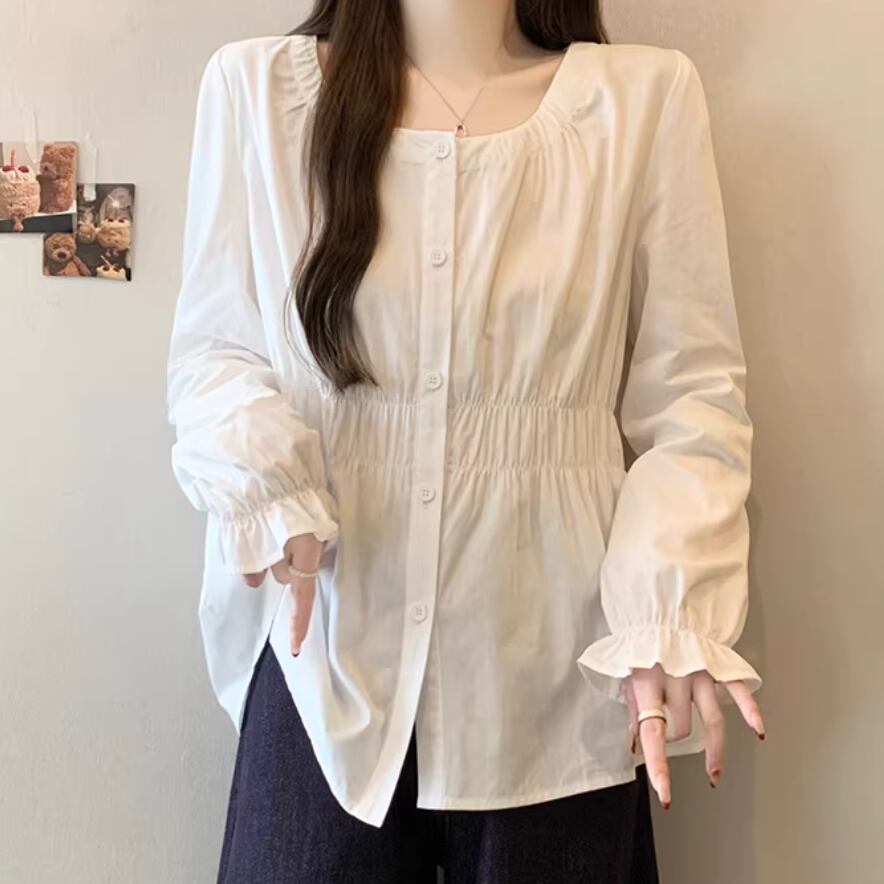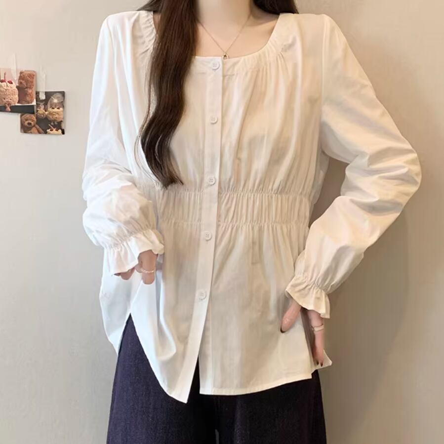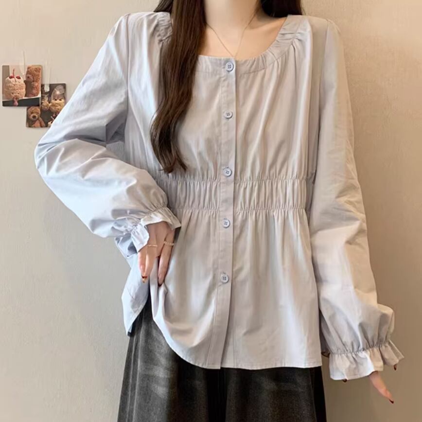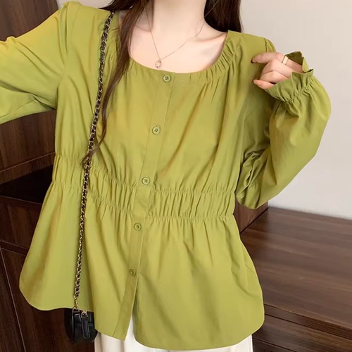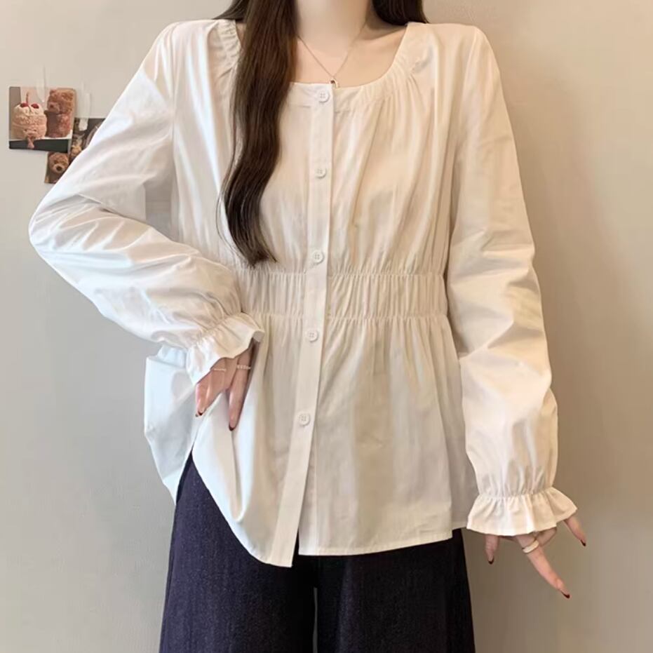 レースカラーアシメボタンドッキングトップス ・71106