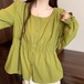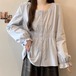 3色/レースアップVネックドッキングトップス ・73992