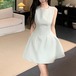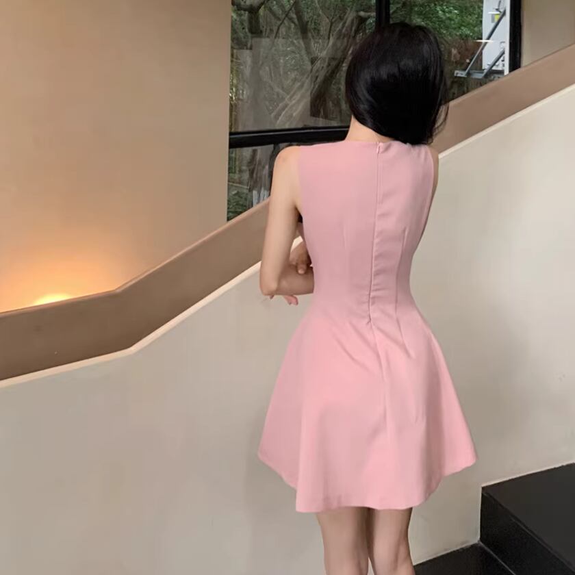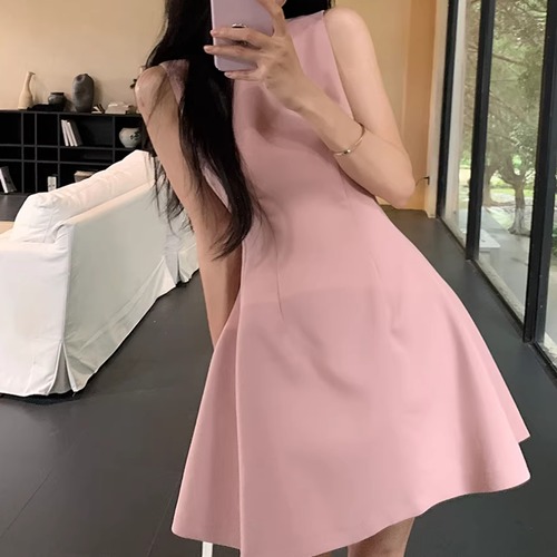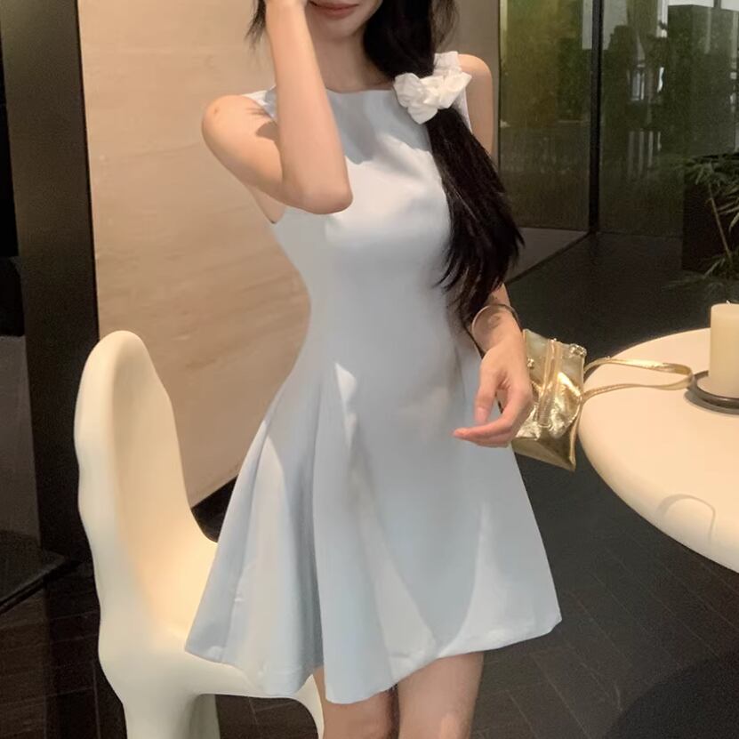 2色/チュールフラワーフリルネックボウタイワンピ ・54889