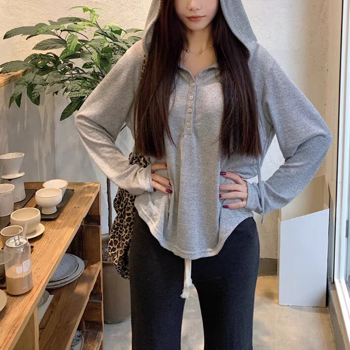 3色/レースアップVネックドッキングトップス ・73992