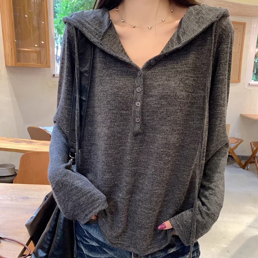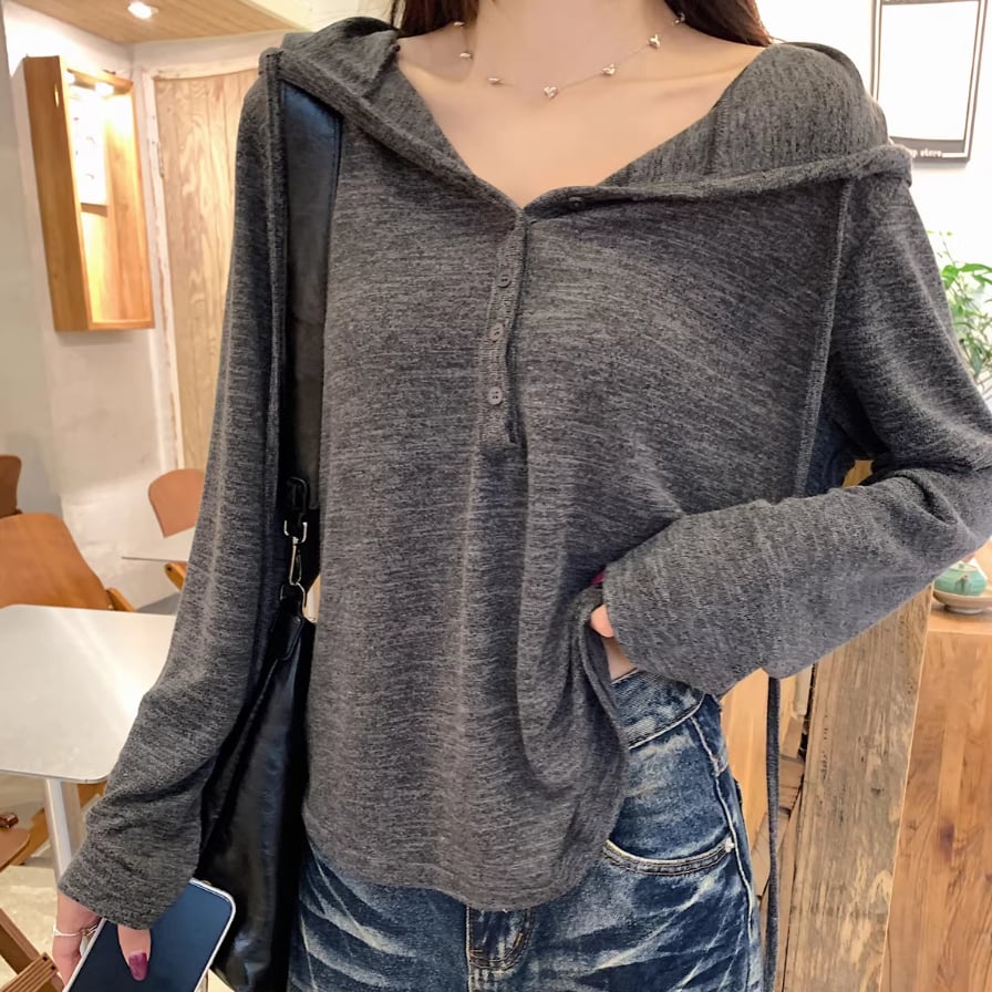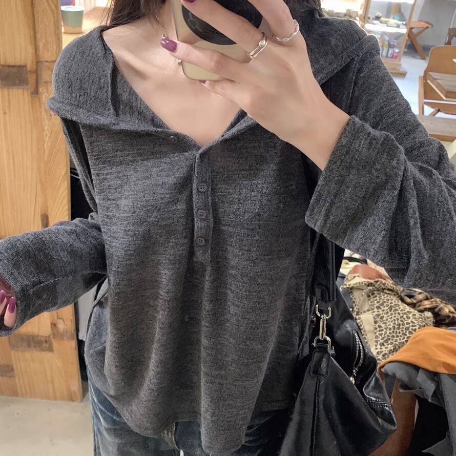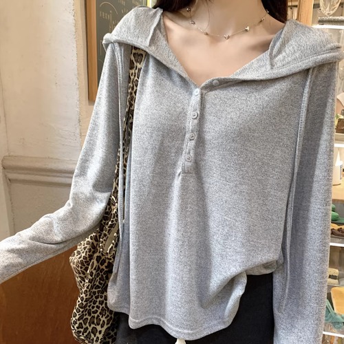 レースカラーアシメボタンドッキングトップス ・71106