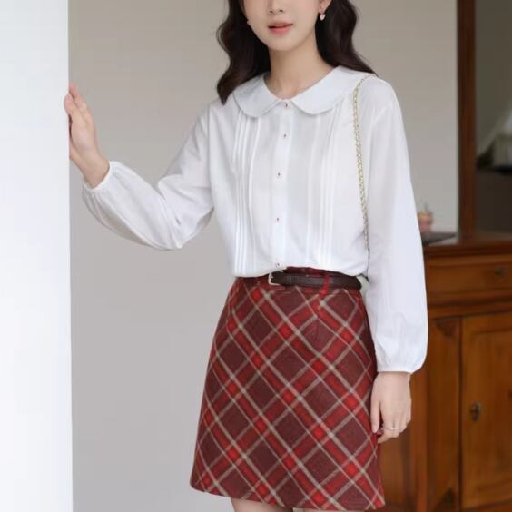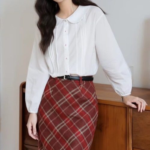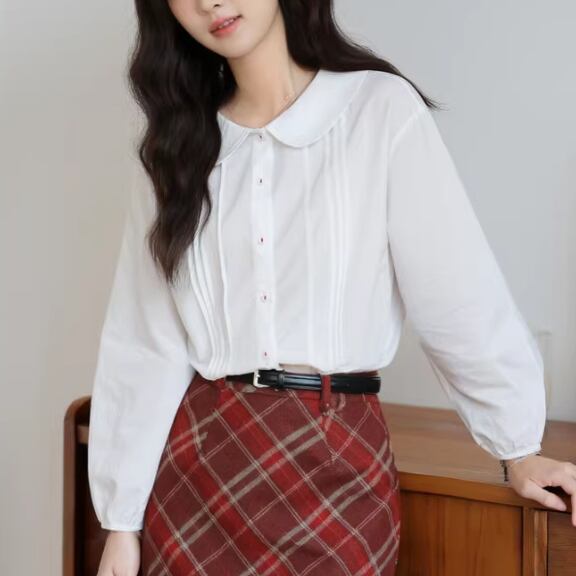 2色/Vネックタックデザインペプラムブラウス ・76114