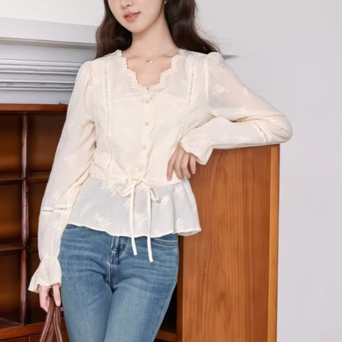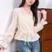 2色/Vネックタックデザインペプラムブラウス ・76114