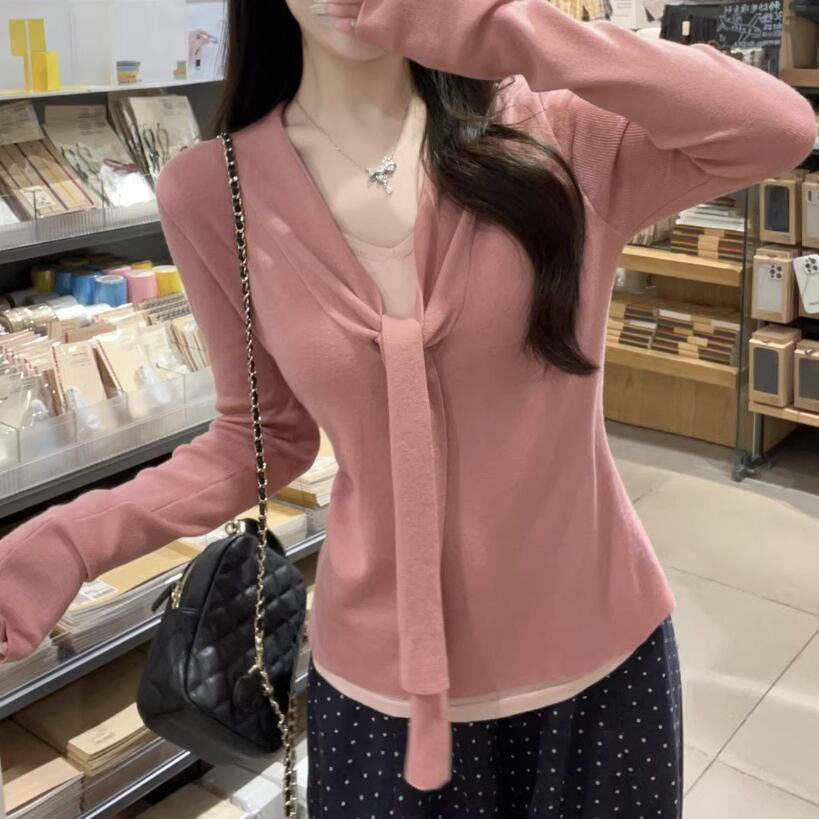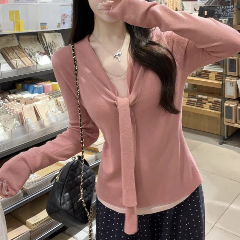 Vネックナンバリングニット ・76067