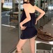 2色/チュールフラワーフリルネックボウタイワンピ ・54889