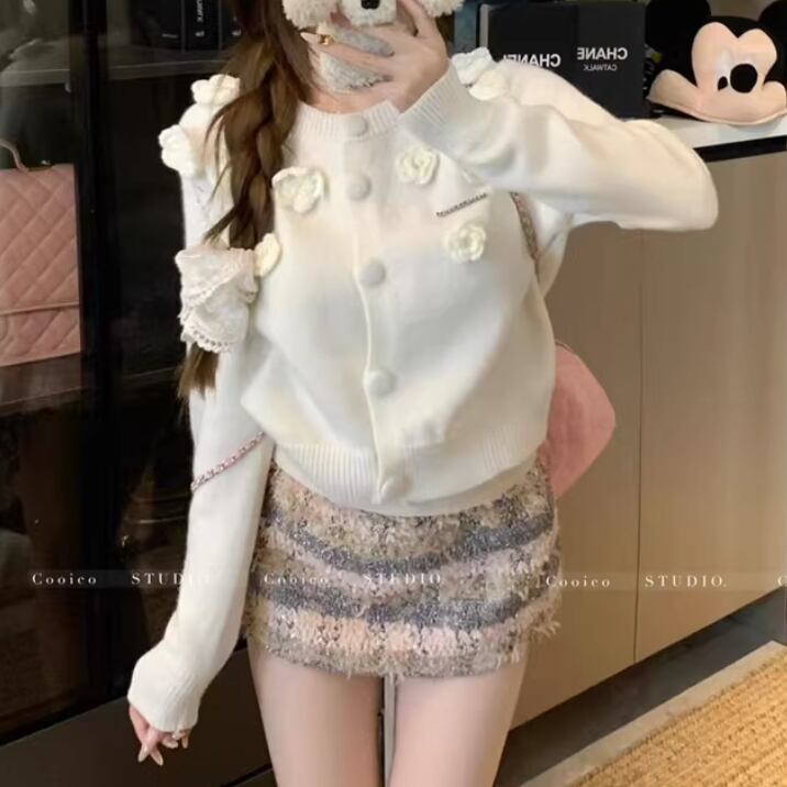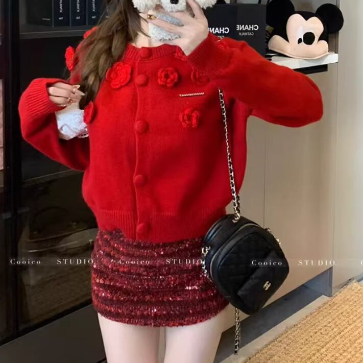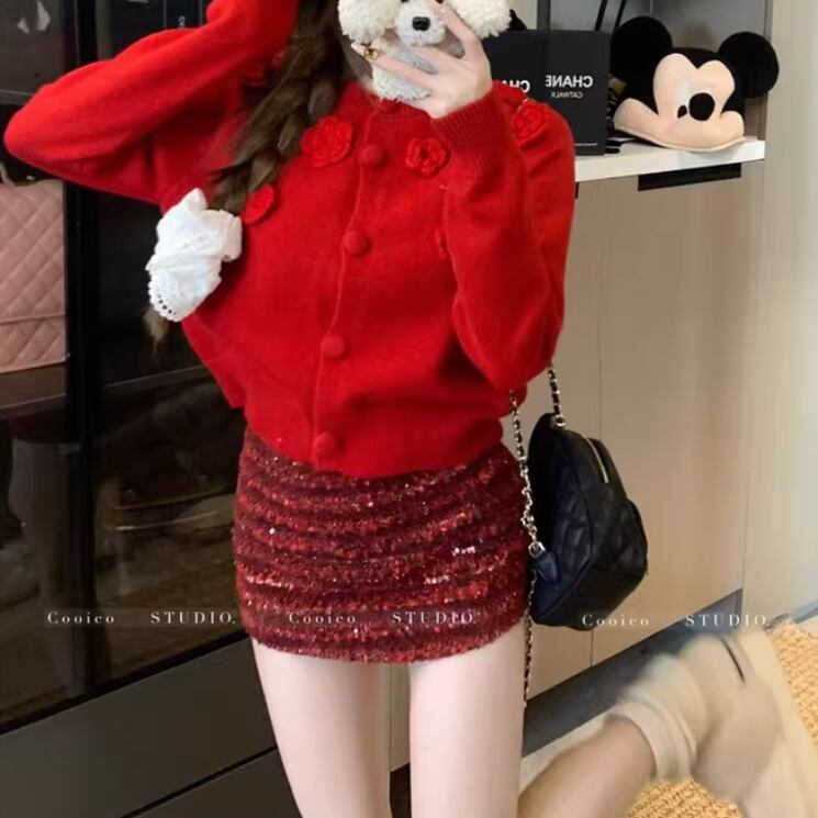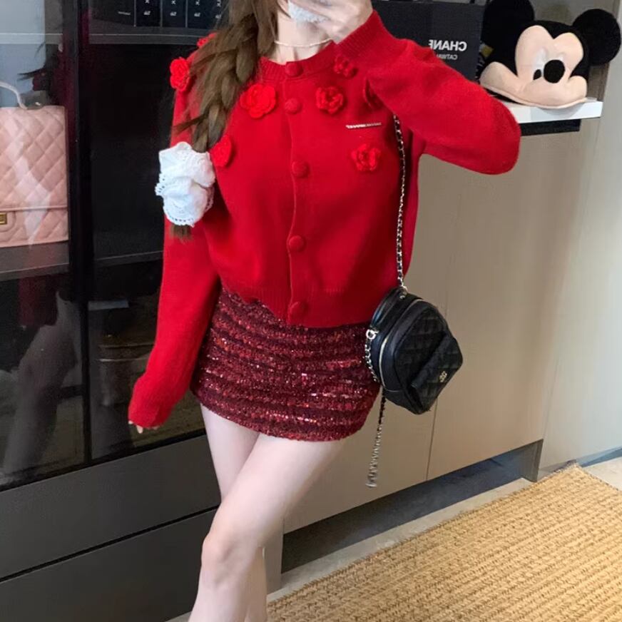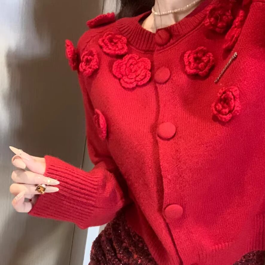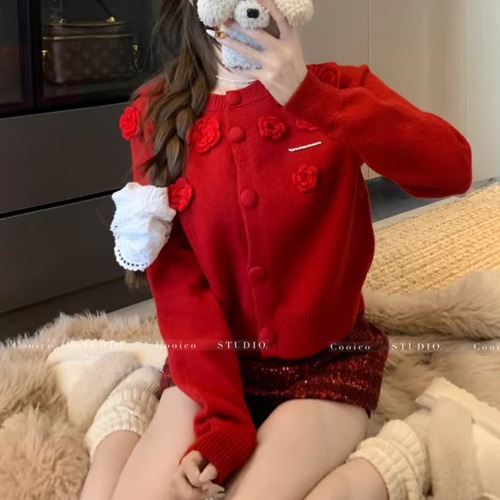リボングリッターケーブルニットカーデ ・74024