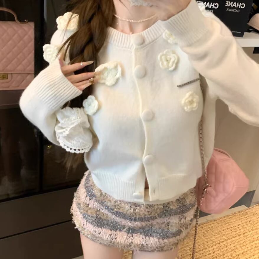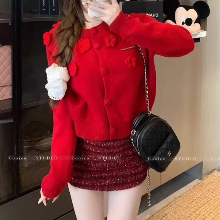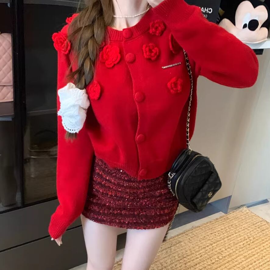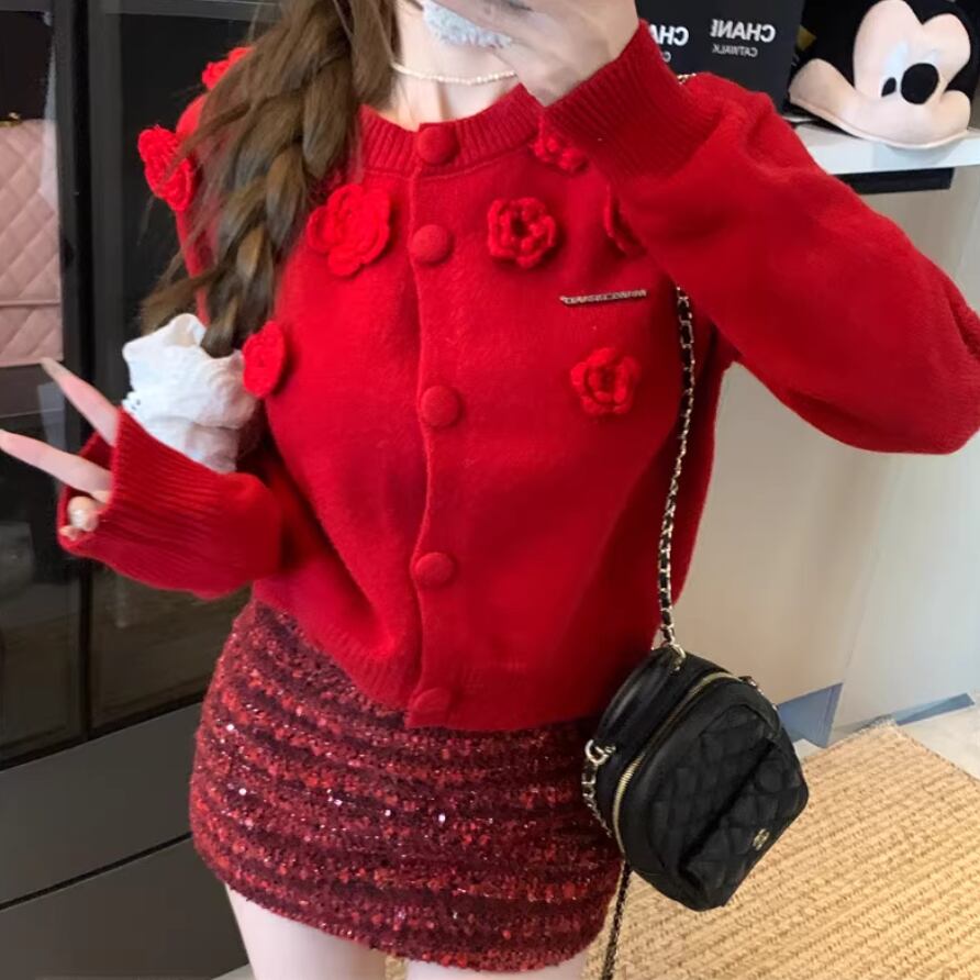 リボングリッターケーブルニットカーデ ・74024